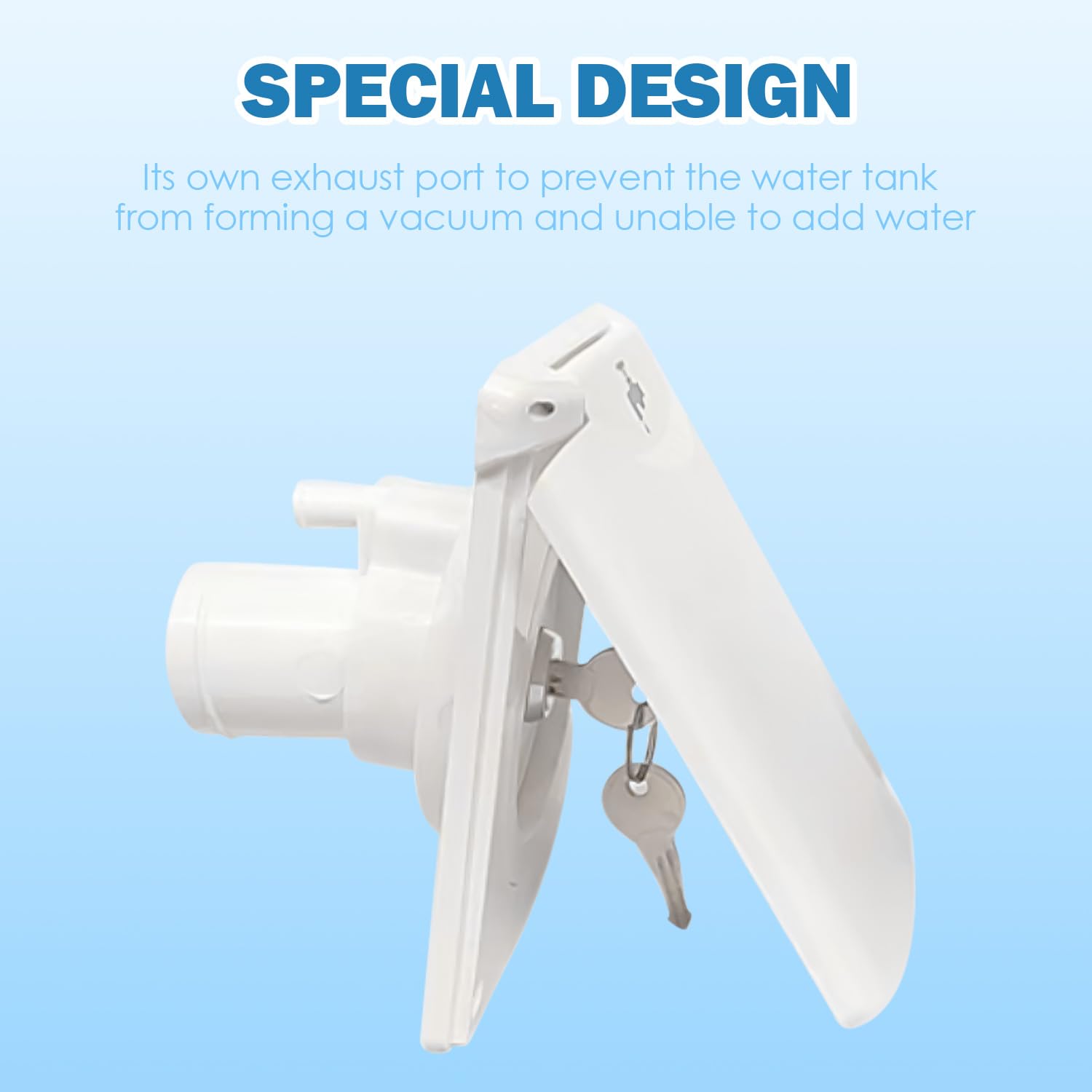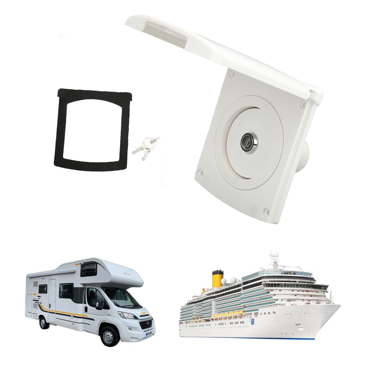 Design speciale: porta di scarico del serbatoio con la propria porta di scarico per evitare la formazione di un vuoto nel serbatoio che impedisce il riempimento dell'acqua. Il bocchettone di riempimento dell'acqua è adatto per camper, barca, camper, rimorchio. Serbatoio Acqua Camper Ingresso Acqua A Gravità Con Chiave Di Blocco Camper Marino Tappo Carico Acqua Camper Materiale eccellente: il riempitivo a gravità è realizzato in materiale ASA di grado ingegneristico, che non è facile da ingiallire ed è durevole. Il prodotto è chiudibile a chiave e viene fornito con 2 chiavi nella confezione per garantire la sicurezza dell'acqua. L'installazione può essere completata facilmente senza una guida professionale. Ingresso acqua a gravità con chiave di blocco camper marino caravan camper rimorchio parti rv, puoi ottenere maggiori dettagli su Ingresso acqua a gravità con chiave di blocco camper marino caravan camper rimorchio parti rv dal sito mobile su L'ingresso di alimentazione per gravità ha un diametro di 40 mm, che è molto veloce e può ridurre il tempo di riempimento dell'acqua. Protezione impermeabile: la copertura gommata impedisce l'ingresso di detriti e mantiene l'acqua pulita e igienica. C'è un logo del rubinetto sulla copertura esterna per una facile identificazione.