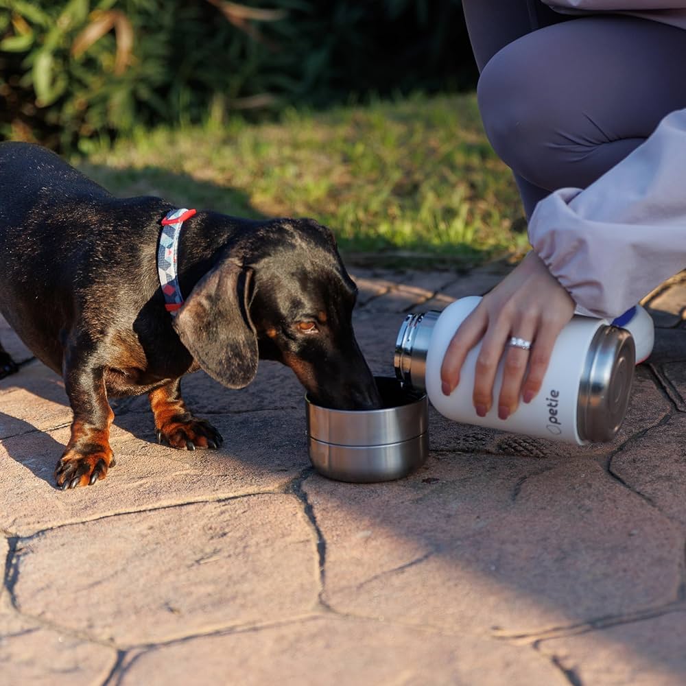 PETIE Borraccia D'Acqua Per Cani Portatile PETDUO, Capacità Di 1 Litro, Ciotola Portatile, Isolamento Termico, Realizzata In Acciaio Inossidabile, Ideale Per Viaggi E Passeggiate