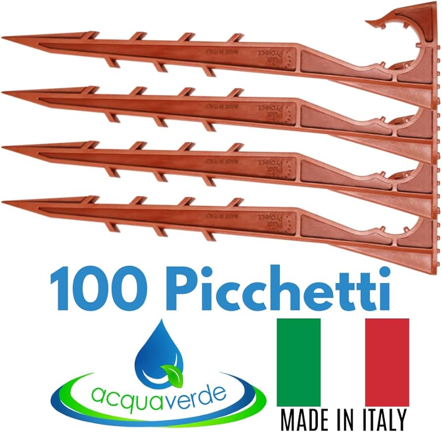 Confezione RISPARMIO 100 pezzi: i nostri picchetti in plastica permettono l'ancoraggio a terra del tubo di irrigazione a goccia Prodotto targato Plast Project, azienda operante nel settore della produzione di raccorderia in generale da oltre 40 anni, con un occhio rivolto alla sostenibilità ambientale. 💦 【ANTI UV】I picchetti di ancoraggio sono resistenti nel tempo, non sbiadiscono e sono garantiti per 2 anni. Ala Gocciolante Acquaverde | Kit 100 Picchetti Di Ancoraggio E Ferma Tubo Da 16 E 20 Mm Marrone 11897 Picchetti Per Irrigazione Prezzi 💦 【100 PEZZI】Il kit da 100 pezzi ci permette di offrire un prezzo davvero competitivo mantenendo uno standard qualitativo eccellente. 💦【ANCORAGGIO】I nostri picchetti per tubo gocciolante, a differenza di quelli comuni in commercio, presentano 7 ancoraggi, rendendo questo picchetto molto robusto e con una presa nel terreno senza precedenti.