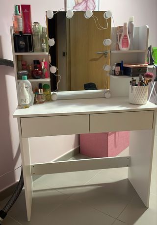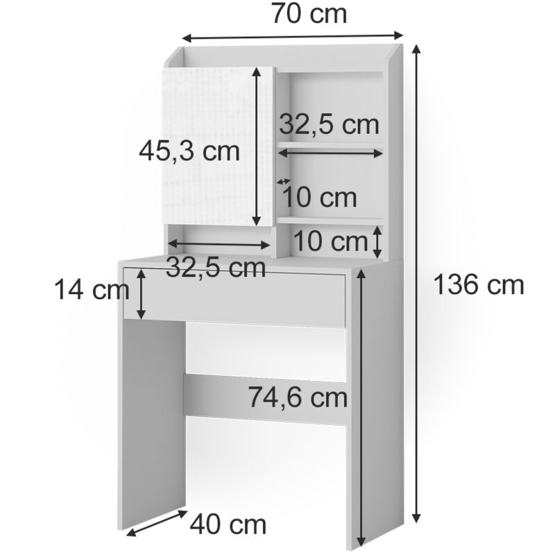 Il suo design ottimale e l'aspetto moderno ti daranno soddisfazione ad ogni esperienza di trucco. Questa meravigliosa consolle è dotata di illuminazione LED e di un comodo sgabello per assicurare il massimo comfort durante l'utilizzo. La consolle da trucco con specchio presenta quattro ripiani aperti e un disegnatore, oltre ad uno specchio rettangolare elegante. DIMENSIONI: La toeletta ha le seguenti misure: 70 cm - Larghezza, 136 cm - Altezza, 40 cm - Profondità. FORNITURA: Tavolo da toilette, Illuminazione LED, Sgabello, Istruzioni di montaggio, Materiale di montaggio Il tavolo è dotato di quattro ripiani aperti e di un cassetto, per riporre comodamente tutti i prodotti per il trucco e gli accessori. --- Dati tecnici: Colore:BiancoDimensioni:70 x 136 x 40 cm (LxHxP)Material:Pannello truciolare, 16 mmSuperficie:Rivestimento in resina melamminicaPeso netto senza confezione:29.22 kg. Per evitare che questo mobile si ribalti, deve essere ancorato al muro. Il tavolo è stato progettato con un design semplice, ma molto elegante, in grado di adattarsi a qualsiasi arredamento. --- FORNITURA: Tavolo da damming con specchio, illuminazione a LED, sgabelli, istruzioni di montaggio, materiale per il montaggio--- Laura presenta un'elegante serie di mobili che comprende una varietà di specchiere. Non c'è niente di meglio di una consolle funzionale e di design per sentirsi bellissime ogni giorno. È perfetta per organizzare i trucchi e per riflettere la bellezza di ogni donna. Vicco tavolo da toeletta Laura, Bianco, 70 cm con illuminazione LED e sgabello : : Casa e cucina. Passa a. Contenuti principali ... MATERIALE: Il supporto per il trucco è composto da un truciolato di 16 mm di facile manutenzione, con rivestimento Con molte opzioni diverse in diverse configurazioni, puoi personalizzare il tuo spazio. Postazione Trucco Bambina Acquista Il Comodino Vicco Laura Bianco + Luce LED - Ok Living Postazione Make Up Si prega di seguire attentamente ogni passaggio delle istruzioni. Tutte le dimensioni dettagliate sono indicate nelle foto. Descrizione prodotto Il tavolo da trucco Laura è il sogno di ogni donna che ama truccarsi e curare la propria bellezza.