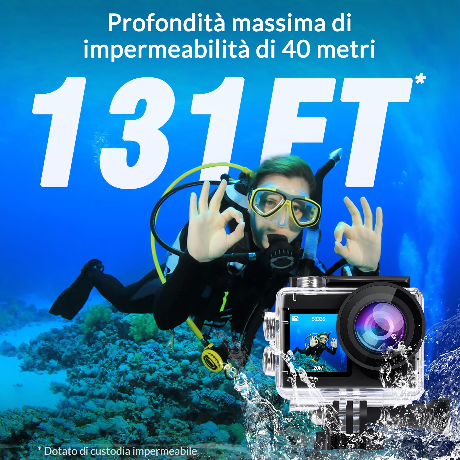 Icefox Action Cam, 20MP Action Cam 4K Con Touch Screen
