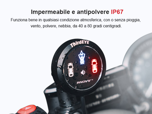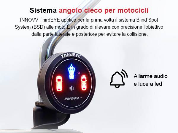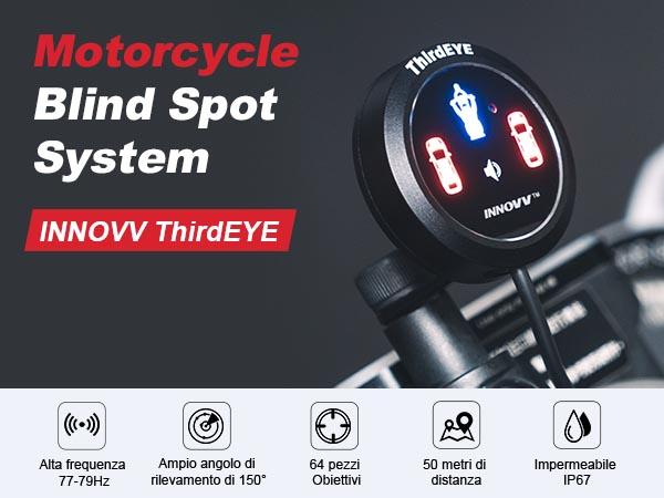INNOVV ThirdEye - Assistente Ad Angolo Morto Con Ak E Opt, Allarme, Sistema Di Assistenza Moto Impermeabile Rileva I Pericoli Laterali E Posteriori, Per Moto, E-bike (versione Specchio