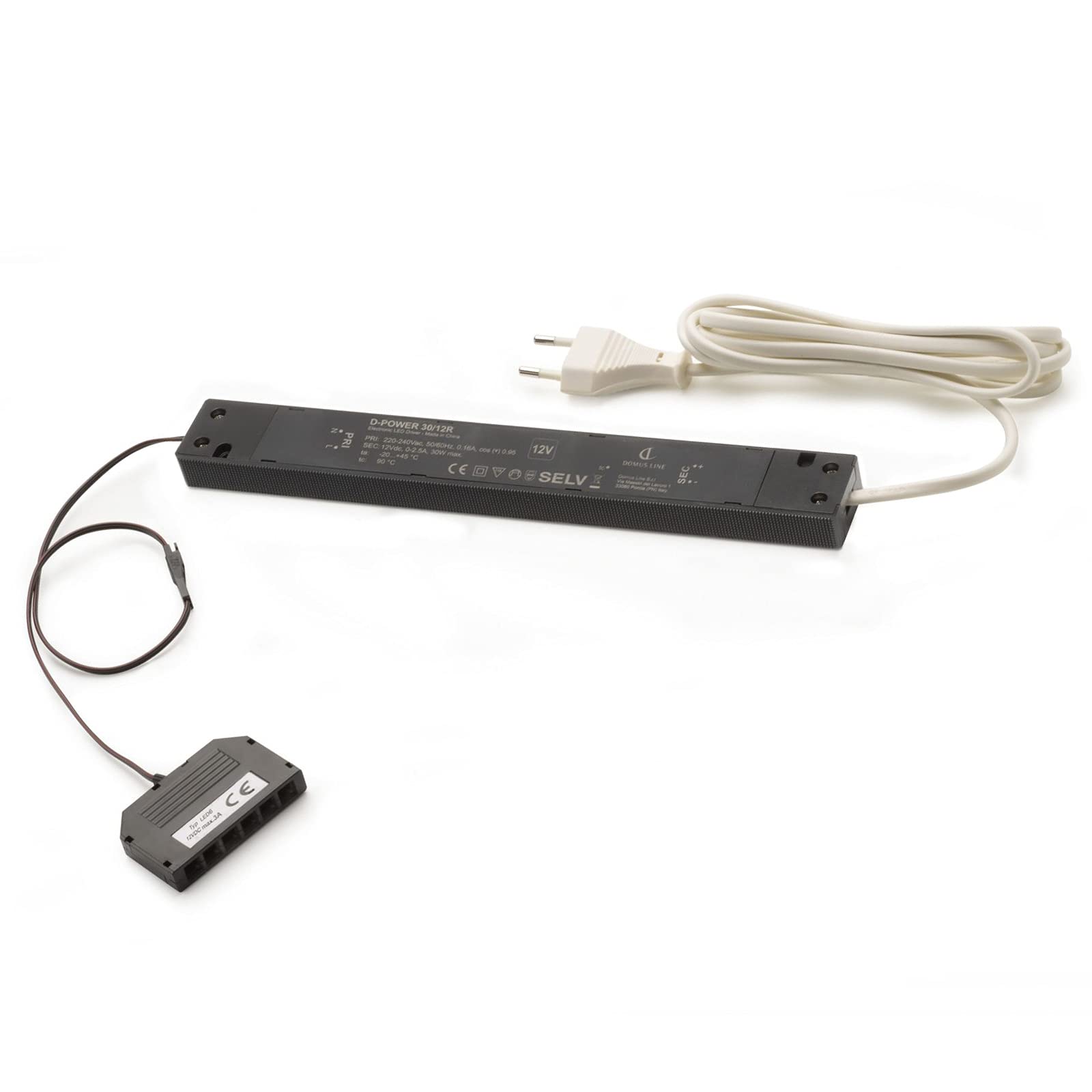 Domus Line Illuminazione Led Adattatore Di Rete A Spina Europea, 12 V, Spina Di Alimentazione A LED Domus Line Prodotti Convertitore/trasformatore LED Domus Line 12 V / 30 W Trasformatore LED Domus Line (spina europea, 256 x 34 x 16 mm, 12 V, 30 W, con adattatore a 6 vie Micro12) convertitore ... €17 in meno rispetto al nuovo prezzo Tensione di ingresso: 220 - 240 V // Tensione di uscita: 12V DC // Corrente di uscita: 2,5 A // Potenza: 30 W // Protezione da sovratensione e cortocircuito // Grado di protezione IP: IP 20 // Certificazione: CE // Protezione classe: II // Cavo di rete (spina europea) // Cavo di collegamento con connettore Micro12 e adattatore a 6 vie // Temperatura ambiente (ta): -20 ... 45 ° C Consigliamo quindi di collegare a questo trasformatore luci con un consumo totale massimo di 21 watt (ad es. tre luci da 7 W)! Volume di consegna: 1 pezzo trasformatore // Nota: Si consiglia di scegliere il trasformatore in modo che l'uscita sia sempre almeno del 30% superiore a quella del pantografo. Di solito può anche essere nascosto dietro un armadio a muro!