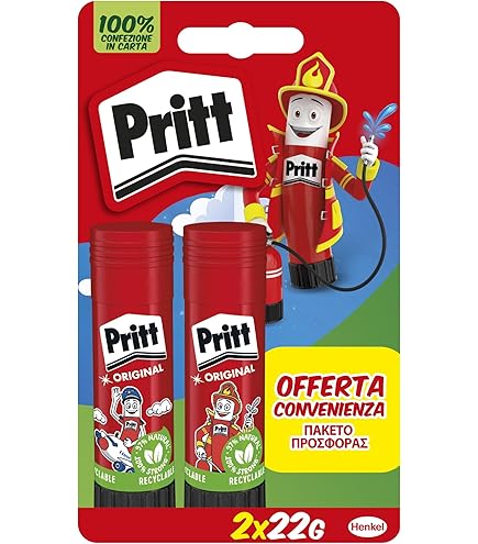 - Basso raggrinzimento della carta grazie alla formula con poca acqua- Senza solventi e lavabile- Colore: trasparente- Dimensione: 22 g*incl. Contenuto: Confezione vantaggiosa con 8x Pritt adesivo da 22 g, adesivo artigianale privo di solventi per carta, cartone, feltro, foto & cotone ecc. , 97% ingredienti naturali incl. Acqua trasparente Colla Pritt Pritt Colla Adesiva Sicura E Adatta Ai Bambini Per Attività Artistiche E Colla Stick Marca: PrittColore: MarciumeCaratteristiche: Prestazioni uniche – Grazie al basso contenuto d’acqua, la penna adesiva Pritt è altamente efficiente e durevole – perfetta per il lavoro artigianale o come colla scolastica Siate pronti per una creatività illimitata - con il resistente e adatto ai bambini Pritt Stick. Acqua**Basso contenuto d'acqua, maggiore efficienza; attacca fino a 2 volte più carta, testato con carta da 160 g/m², analizzato dall'Istituto Fraunhofer IFAM Adesivo adatto ai bambini – Con il 97% di ingredienti naturali*, la penna adesiva è ideale per le esigenze scolastiche e può essere lavata anche a basse temperature dopo il lavoro. Se necessario, riposizionare le superfici prima che l'adesivo si asciughi. Ispirante & creativo – La penna Pritt sicura è l’accompagnatore ideale per i lavori di artigianato in cui i bambini sviluppano la loro creatività. Adatto per una varietà di materiali. Tutto quello che potete immaginare. I vantaggi del prodotto in dettaglio:- Ideale come colla artigianale per bambini e per uso in ufficio- Adatto ai bambini e sicuro- Con il 90% di ingredienti naturali*- Alta efficienza: lunga durata**- Facile da applicare e bassa formazione di grumi- Forte adesione iniziale a vari materiali artigianali, come carta, cartone, feltro, foto, cotone, ecc. Con un potere adesivo forte e duraturo, la colla è facile da applicare e provoca meno grumi o rughe sulla carta grazie alla sua formula a basso contenuto d'acqua. La colla stick Pritt, di alta qualità e senza solventi, aiuta in questo senso.