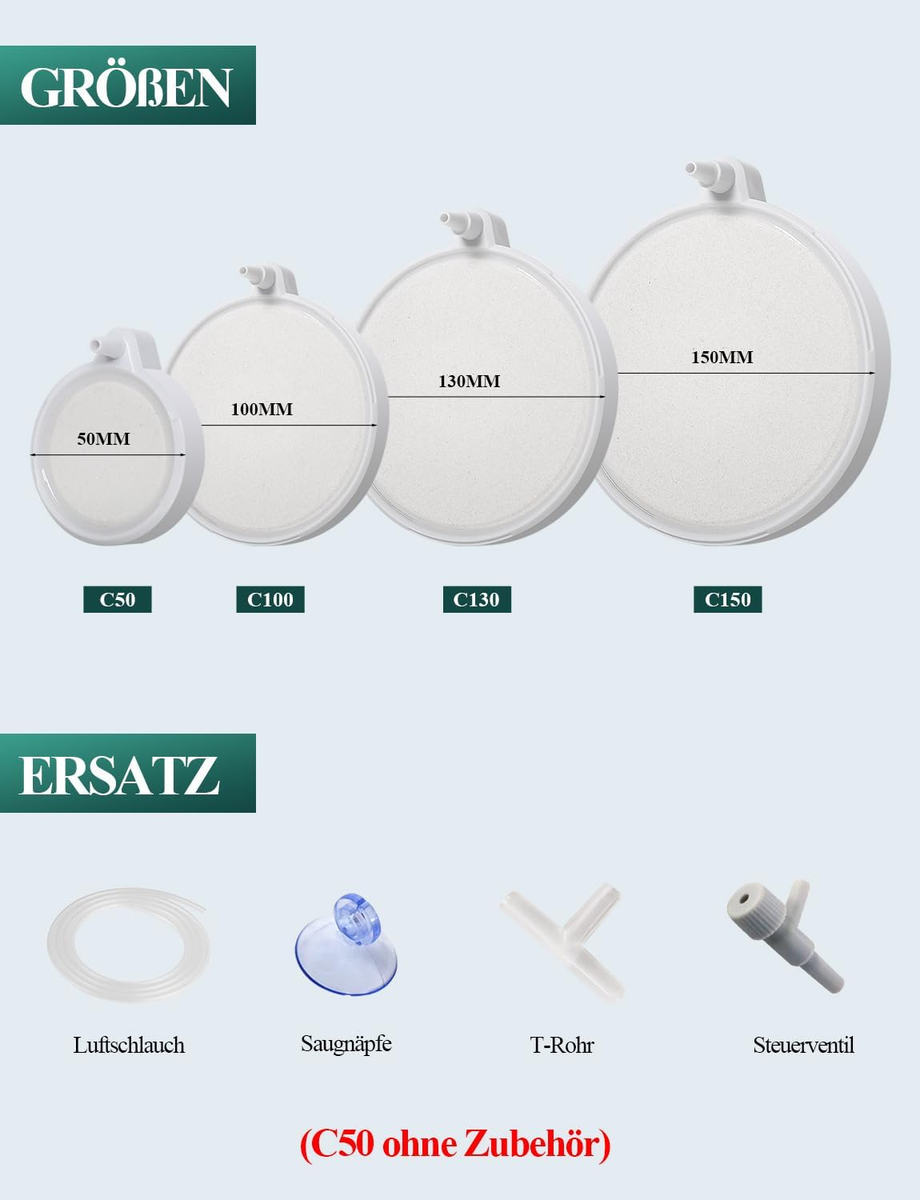 KIT ARIA ACQUARIO Aeratore Disco Di Ossigeno Atomizzato Vetro Diffusore A Bolle EUR 17,15
