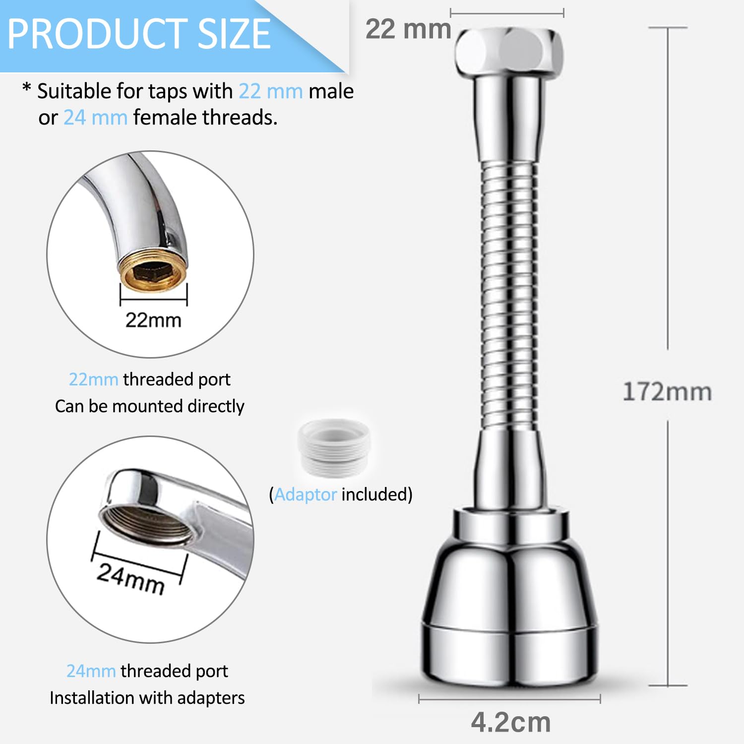 Comodo e Pratico: Prolunga per rubinetto cucina l'acqua fuori dall'acqua è morbida e confortevole, la pulizia non è limitata, non solo per evitare schizzi, ma anche per risparmiare acqua, è una buona scelta per la cucina o lavandini del bagno Alta Qualità: Prolunga per rubinetto è realizzato in materiale abs di alta qualità, attraverso l'elaborazione della tecnologia di placcatura, superficie liscia e lucida, la superficie è liscia e lucida, il tubo elastico è realizzato in materiale pvc, non facile da deformare o invecchiare, può essere riutilizzato per lungo tempo Guarnizione Lavandino Cucina Prolunga Rubinetto Cucina, Aeratore Per Rubinetto Ruotabile A 1080°, Rubinetto Di Prolunga Girevole, Rubinetto Ad Estensione Girevole Per Rubinetto Bagno Doccia Lavandino : Amazon.it: Fai Da Te Prolunga Rubinetto Per Cucina Accessori Completi: Diffusore rubinetto cucina è dotato di 1 adattatore per filettatura interna ed esterna, 2 guarnizioni sottili e spesse e 1 giunto universale; è possibile allineare manualmente le filettature e serrarle rapidamente dopo averle ricevute, risparmiando tempo e fatica Libertà di Estensione: Adattatore rubinetto cucina è dotato di un tubo flessibile telescopico che estende il miscelatore ovunque per un'aspirazione multidirezionale, ampliando l'angolo di pulizia e la portata dell'acqua, con regolazioni flessibili che facilitano la pulizia