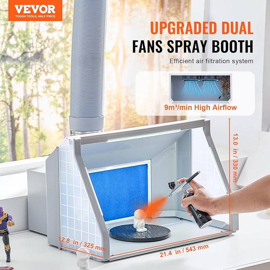 Non importa se dipingi modellini di automobili, torte, piccole parti, giocattoli, ceramiche, magliette o se ti occupi di artigianato, modelli telecomandati o vari lavori manuali, soddisferà le tue esigenze. Filo filtrante efficiente e piatto rotante rimovibile: il filo filtrante spesso 20 mm (0,79 pollici) assorbe efficacemente particelle e odori. Acquista l'ultia cabina di verniciatura VEVOR IT offre i igliori prodotti cabina di verniciatura per lo shopping online Cabine Di Verniciatura Per Aerei K Cabina Di Verniciatura Aerografo Filtro Estrattore Cabina Di Verniciatura Portatile Pieghevole Rispettoso Dell'ambiente Con Luce A LED Wagner Airless Design portatile: la cabina di verniciatura si ripiega facilmente in una custodia portatile. L'area di lavoro aperta misura 410 x 380 x 310 mm (16,1 x 15,0 x 12,2 pollici) e offre opzioni di progettazione flessibili. Strumento di spruzzatura ideale: la nostra cabina di verniciatura per hobby consente una verniciatura precisa e fa emergere perfettamente la tua creatività ad ogni tratto. È compatto e leggero, così puoi lavorare e liberare la tua creatività sempre e ovunque. Forte ventilazione: la cabina di verniciatura dell'aerografo è dotata di una ventola di scarico ad alta efficienza con un tubo di scarico flessibile da 1,7 m che fornisce un potente flusso d'aria di 4 m3/min.