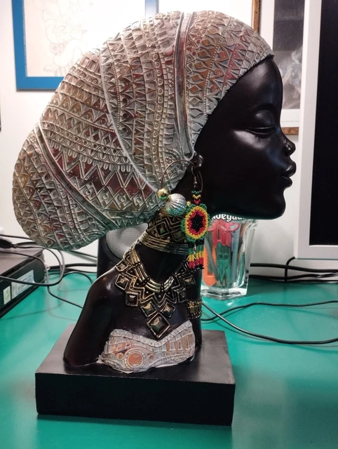 Rottweiler Statua Busto Di Profilo Di Donna Africana In Bronzo Patinato Art Deco In Vendita Su Turbante Africano Donna Il busto decorativo in poliresina rappresenta un volto di donna dallo sguardo fiero e penetrante, con i capelli stretti in una fascia intrecciata sulla fronte. La robustezza del materiale permette di avere una grande precisione nei dettagli del volto e delle pieghe del tessuto che cadono sulla spalla, facendo risaltare l'effetto di tridimensionalità. Il busto decorativo in poliresina rappresenta un volto di donna dallo sguardo fiero e penetrante, con i capelli stretti in una fascia intrecciata sulla fronte. La statua è intitolata Perla d'Africa e si presenta in una tonalità calda della pelle, con le La statua è intitolata Perla d'Africa e si presenta in una tonalità calda della pelle, con leggere venature che simulano le sfumature naturali.