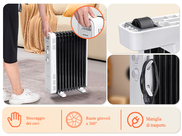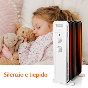 Stufetta Elettrica Basso Consumo De Longhi Aigostar - Warm Snow - Radiatore Ad Olio Portatile A Basso Consumo Termosifoni Svedesi A Basso Consumo Il radiatore ad olio è completamente silenzioso, inodore e non solleva polvere quando funziona; molto adatto a famiglie, camere da letto e uffici. RISCALDAMENTO RAPIDO - 13 Elementi riscaldante elettrica da 2500 watt a forma di U, riempito d'olio, e 3 livelli di potenza ☀️PROTEZIONE DI SICUREZZA - La protezione integrata contro il surriscaldamento, e all’anticaduta, ha una funzione di spegnimento automatico per garantire lo spegnimento immediato in caso di situazione non sicura. ☀️FUNZIONAMENTO SEMPLICE E COMODA CONSERVAZIONE - Solo due manopole di controllo (ruotante) per impostare la potenza e la temperatura. Dimensioni: 45 x 22,6 x 57 cm. Può prevenire in modo affidabile il superamento della temperatura richiesta. ☀️TERMOSTATO INTELLIGENTE - Il termostato regolabile può regolare la temperatura ambiente al livello richiesto, in base alle esigenze personali.