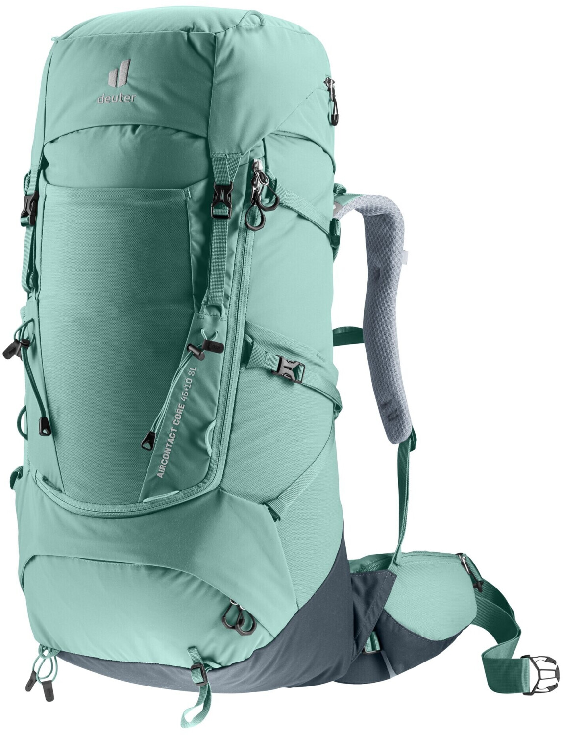 Vestibilità ottimale in un attimo per qualsiasi lunghezza della schiena grazie a VariSlide. Le alette dei fianchi VariFlex ECL, mobili e aderenti, assorbono bene il peso e offrono una maggiore libertà di movimento durante l'arrampicata grazie al taglio delle gambe. Lo zaino Aircontact Core 50+10 di Deuter è ideale per gli escursionisti che cercano uno zaino multifunzionale e comodo in qualsiasi situazione. Grazie alle sue caratteristiche, questo modello di zaino ti assicura un grande divertimento! Maggiori dettagli Paese di origine : Vietnam Non utilizzare la lavatrice o l'asciugatrice. Materiale principale realizzato con oltre il 50% di materiali riciclati e certificato bluesign Attacco per sistema di idratazione (deuter Streamer 3.0 - non incluso!) Per tutti i giramondo che hanno bisogno di uno zaino multifunzionale e comodo per i trekking prolungati. Il materiale principale è composto per oltre il 50% da materiali riciclati ed è certificato bluesign. A seconda dell'uso e dell'equipaggiamento, lo zaino può essere modificato grazie alle cinghie di compressione rimovibili, in modo da poter agganciare un'ampia varietà di oggetti. Deuter Aircontact Core 50+10 Trekking Backpack - Cactus-ivy