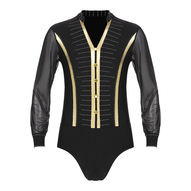 Body Nero Danza Classica Aislor Uomo Body A Rete Con Strass Maniche Lunghe Body Per Ballo Latino Abbigliamento Ballo Uomo Body da ballo latino da uomo con nappe di paillettes e strass che brillano sotto la luce per illuminare ogni esibizione Realizzato in tessuto di alta qualità, traspirante e morbido, ben fatto e delicato sulla pelle, per garantire il massimo comfort al tuo bambino per tutto il giorno Caratteristiche: Costume intero da ballo latino tango rumba dance shirt leotard bodysuit shirt top, buon tessuto elasticizzato. Maniche lunghe , collo con scollo a V e stand, corpetto superiore con strass glitterati, cerniera frontale nascosta, cavallo co La zona inguinale triangolare con bottoni a pressione garantisce flessibilità durante il ballo e comodità quando si va in bagno