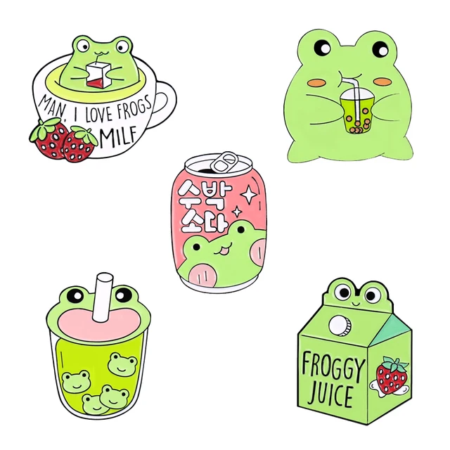 Cartone Animato Carino Animale Rana Smalto Spille Caffè Può Tè Al Latte Fragola Latte Rana Lega Spilla Distintivo Gioielli Dolci Regalo Per Bambino - AliExpress