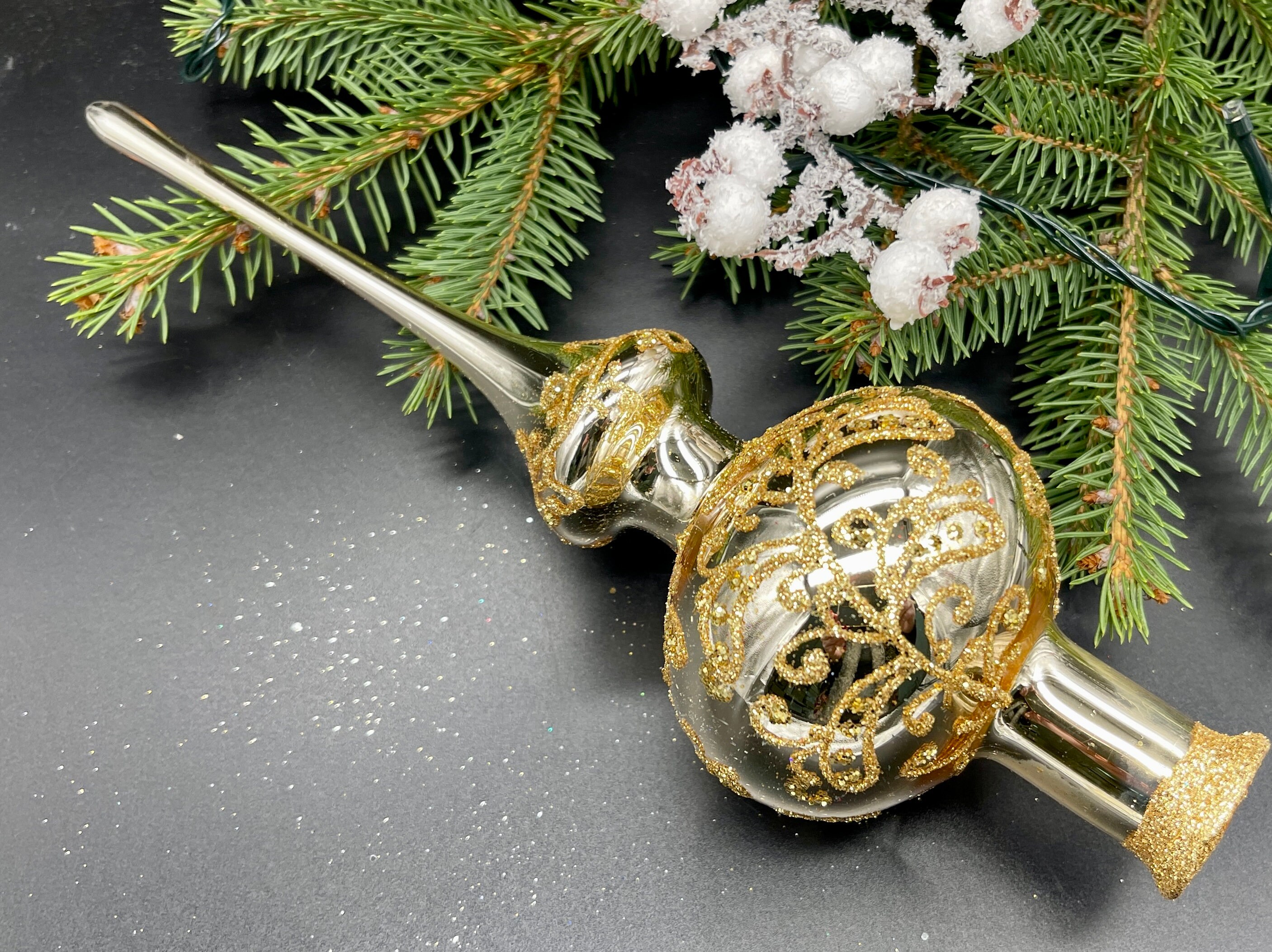 Puntale Per Albero Di Natale A Forma Di Stella - Decorazione Per Albero Con Paillettes Glitterate In Oro, Argento, Bianco Romantico San Valentino