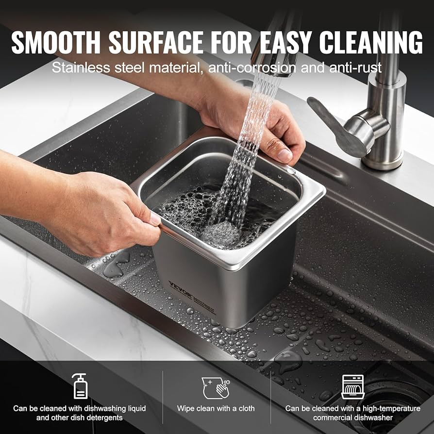 VEVOR Set Contenitore Per Alimenti Antiaderente Da Cucina Confezione 6 Pezzi, Vassoio Contenitore Da Tavolo In Acciaio Inox Bacinelle Profondità 107mm Per Catering Uso Commerciale Senza Coperchio : Amazon.it: Casa E Cucina