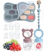 Questo set contiene 2 dispenser di frutta per bambini, 1 vaschetta per cubetti di ghiaccio, 1 catenella per ciuccio e 6 ciucci in silicone in 3 diverse dimensioni. Cucchiaino Svezzamento JONRRYIN Ciuccio Frutta Neonati, Ciuccio Per Frutta, Ciuccio Per Alimenti Neonati Senza BPA, 2 Ciuccio Per Frutta Baby+6 Capezzoli In Silicone In 3 Misure, 3 A 24 Mesi (Blu Fiocchi Di Riso Neonato Dà una sensazione di freschezza e sollievo con facilità. È ideale per l'uso in frigorifero, in lavastoviglie o nel piroscafo. I ciucci per frutta e dentizione di NatureBond sono progettati in colori invitanti che stimolano l'appetito del bambino in modo che assuma sostante nutrienti naturali provenienti da frutta e verdura. Set da 2 pezzi. È anche un modo sicuro per introdurre i Dispenser funzionale per alimenti per bambini: questo dispenser per alimenti per bambini non è solo per l'alimentazione, ma anche per alleviare i disturbi dentali. La morbida tettarella in silicone dispone di fori da 2 mm che permettono solo di passare piccoli pezzi per garantire un'alimentazione sicura. 2pcs Ciuccio Frutta Neonati per Bambini per Alimenti 3 4 5 6+ mesi 1. Questo ciuccio per bambini è completamente realizzato in silicone alimentare, che non solo può nutrire il latte, ma anche alleviare i problemi di dentizione. 2. Il capezzolo in morbido silicone ha fori da 2 mm, consentendo il passaggio solo di piccoli frammenti, garantendo un'alimentazione sicura. I massaggiagengive sono ideali per provare nuovi alimenti e incoraggiano il tuo bambino a nutrirsi. Design dell'alimentatore di sicurezza: il design del manico in silicone monoblocco senza piccole parti impedisce il soffocamento. 3) Aiuta il mio bambino a sopportare il dolore della dentizione? Sì, la tettarella alla frutta è una vera salvezza quando il bambino sta mettendo i denti! 1) Di cosa sono fatti i prodotti? Silicone morbido e sicuro per gli alimenti. Lenisce molto bene le gengive del bambino. 4) Per quale fascia d'età è adatta? Dai 3 mesi in su A differenza dei distributori di cibo in rete, è più facile da pulire e non ha punti morti nascosti Inoltre, ti permette di preparare i pasti in porzioni, il che semplifica la vita Set per l'alimentazione del bambino: il set comprende 2 mangiatoie per frutta per bambini, 1 vassoio per cubetti di ghiaccio, 1 catenella per ciuccio e 6 tettarelle in silicone in 3 diverse misure.