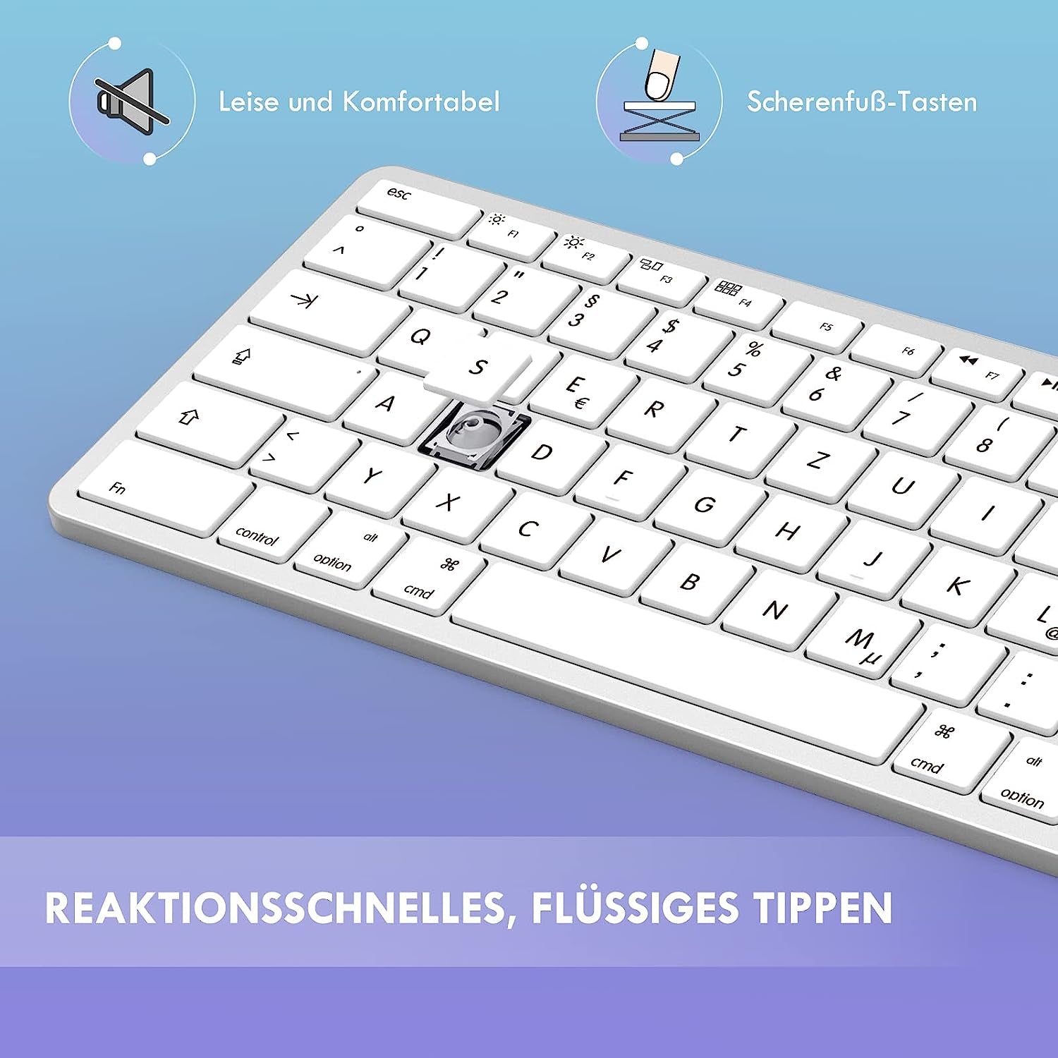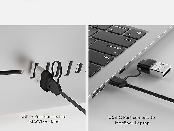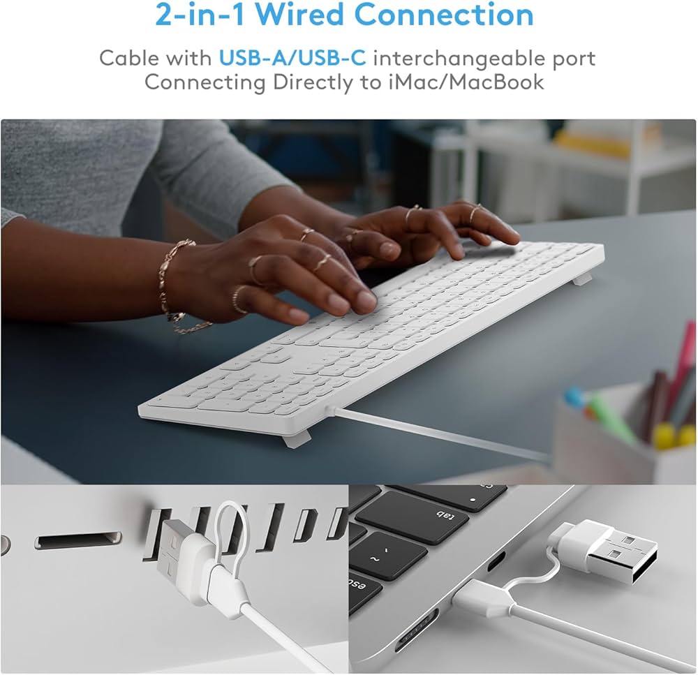 Supporto pieghevole integrato, collegamento via cavo tramite USB-A/USB-C, tastiera USB plug and play con tastierino numerico per iMac/Mac Mini/MacBook Tastiere Esperienza di digitazione confortevole e precisa: con 106 interruttori a forbice, questa tastiera offre un'esperienza di digitazione confortevole e precisa ed è un'alternativa perfetta alla tastiera iMac, alla tastiera del MacBook o alla tastiera Apple Magic Keyboard. Se si preferisce che la tastiera non sia piatta sulla scrivania, è sufficiente ripiegare il supporto per ottenere una posizione di digitazione più comoda. Opzione tastiera rialzata o piatta: questa tastiera per Apple ha un supporto pieghevole che consente di regolare l'angolo di digitazione. Cavo di connessione intercambiabile 2 in 1: per connettersi direttamente a un iMac tramite USB-A o MacBook tramite USB-C, questa tastiera per iMac dispone di un cavo con porte USB-C e USB-C intercambiabili, eliminando l'aggiunta di hub o convertitore. Supporto Tastiera Macally Tastiera Per Computer Ultra-sottile Con Cavo USB, Funziona Alla Grande Sia Come Tastiera Mac Windows Che Cablata – Compatibile Con Tastiera Apple Full Size Con Tastiera Numerica Per Mac Mini Apple Magic Keyboard Una volta collegato, è subito pronto all'uso, non sono necessari driver o software aggiuntivi e non dovrete preoccuparvi di frequenti ricariche.