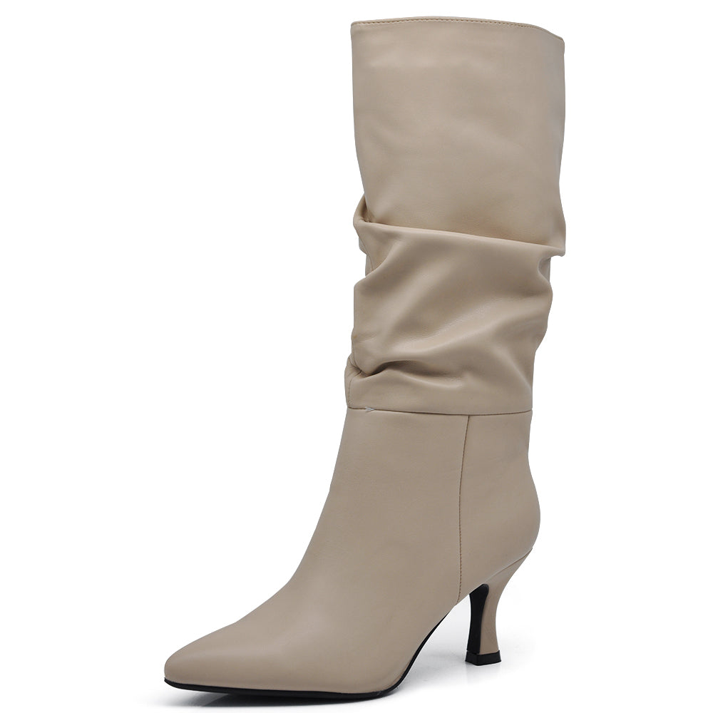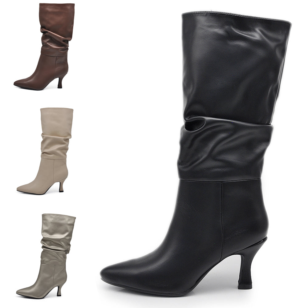 Walopola Stivale Alla Moda Da Donna - Stivali A Metà Polpaccio In Pelle