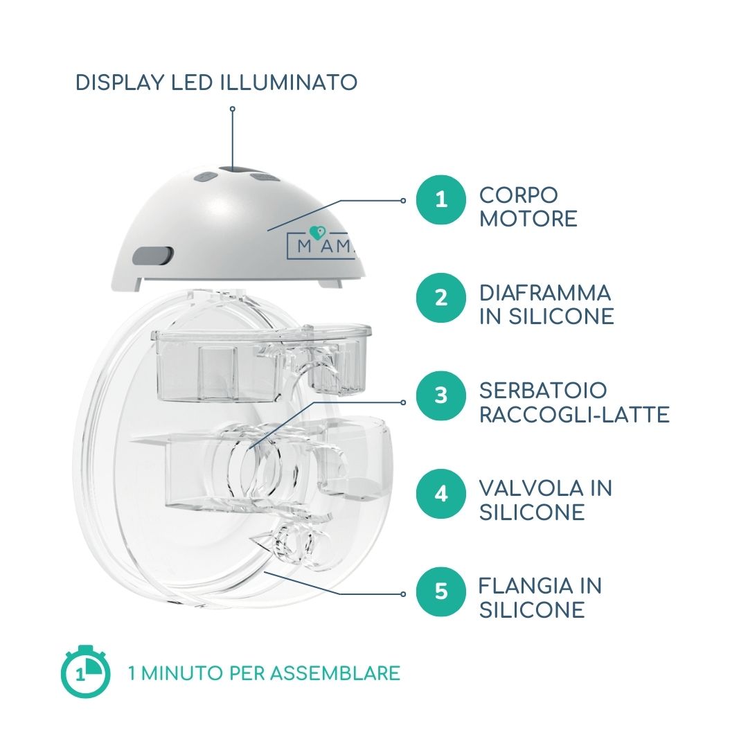 [Facile da Usare, Facile da Pulire] Ogni componente del tiralatte elettrico Wagxoey è progettato per essere facilmente smontato, pulito e rimontato. [Basso Rumore Può Essere Utilizzato di Notte] Non preoccuparti del rumore: il tiralatte portatile Wagxoey funziona in modo silenzioso, garantendo che tu possa pompare senza disturbare il sonno del tuo bambino. Tiralatte Elettrici Portatili Tiralatte Elettrico Indossabile Libera: Allatta In Libertà E Comfort Tiralatte Manuale [Quattro Modalità Opzionali] Le 4 modalità(MASSAGGIO/POMPAGGIO/POMPAGGIO INVERTER/AUTOMATICA) di suzione del tiralatte elettrico Wagxoey ti permettono di scegliere quella che meglio si adatta alle tue esigenze. [Progettazione Senza Fili] Scopri la comodità del nostro tiralatte elettrico Wagxoey, progettato per darti completa libertà di movimento. Ogni sessione di pompaggio è veloce e semplice, così puoi dedicarti a ciò che conta di più. Jheppbay Tiralatte Elettrico Indossabile Portatile - 201g Tira Latte Neonati Elettrico con Display LCD , Senza BPA, Installazione Rapida 5s, 12 Livelli e 3 Modalit à, con Flange da 21/24 mm (1 Pezzo) 4,4 su 5 stelle 2.129 Se hai bisogno di una stimolazione delicata o di un’estrazione potente, il nostro tiralatte indossabile ha la soluzione giusta per te, offrendo sempre il massimo comfort. Scegli il livello di aspirazione che ti fa sentire meglio e pompa più latte in meno tempo, senza compromessi. Con poche parti da lavare, è la soluzione perfetta per mamme occupate che cercano efficienza senza compromettere l’igiene.