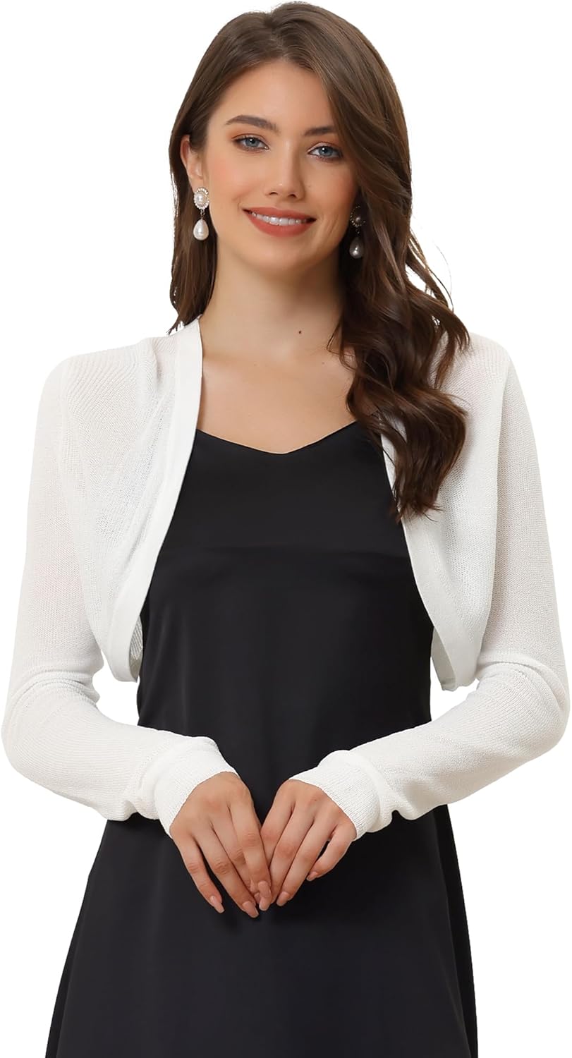 Allegra K Cardigan A Maniche Lunghe Da Donna In Velluto Aperto Davanti Cropped Bolero Shrug, Borgogna, 36