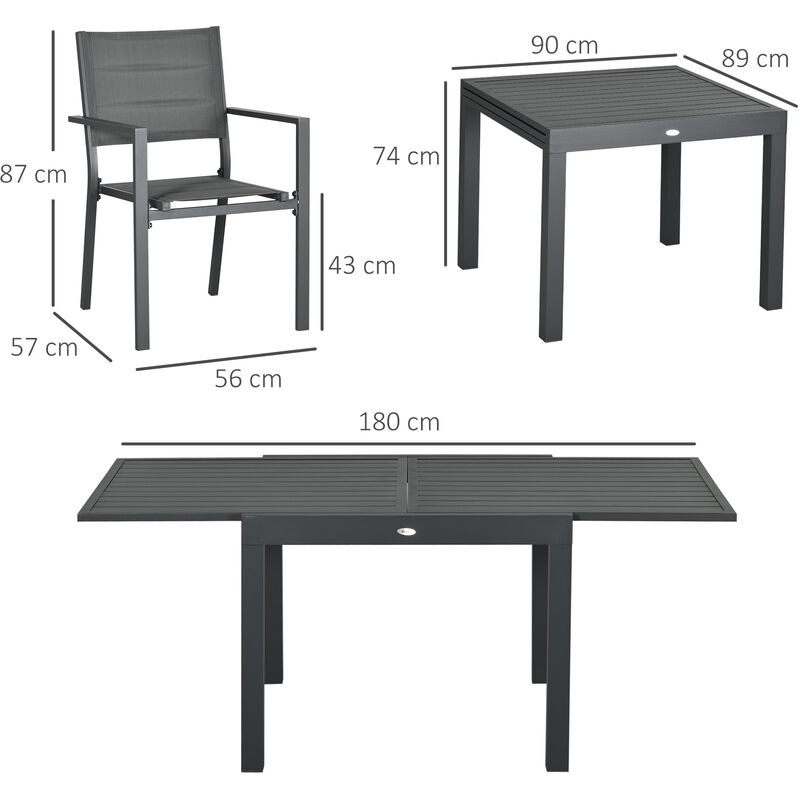 Set 7pz Tavolo Allungabile E 6 Sedie Da Esterno In Alluminio Outsunny M24043639