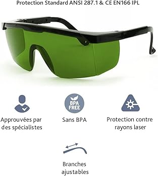 Gli occhiali luce pulsata hanno anche funzioni di protezione laterale e delle sopracciglia e possono resistere ai danni agli occhi causati dai laser in qualsiasi direzione. Indossare prima questi occhiali per proteggere gli occhi da lesioni. Materiali di Alta Qualità]Gli occhiali di protezione laser proteggono i tuoi occhi dalla luce laser. Gli occhiali protettivi per solarium utilizzano lenti professionali in PC (policarbonato) e aumentano il coefficiente di filtraggio efficace, garantendo Non solo può proteggere i tuoi occhi, ma non influisce nemmeno sulla tua vista. Gli occhiali protettivi da lavoro si adattano bene e ti coprono il viso, anche se sono molto scuri puoi comunque vedere tutto ciò che fai con facilità. A condizione che gli occhi non siano stimolati da una luce forte, può anche garantire una visione chiara. Prima di utilizzare questi occhiali laser con luce laser, ad esempio: depilatore laser, macchine per bellezza HPL/IPL, epilatore a luce pulsata, incisore laser e così via. 【Materiali di alta qualità】Gli occhiali di protezione laser proteggono i tuoi occhi dalla luce laser. Gli occhiali sicurezza non provocano vertigini, non abbagliano, proteggono efficacemente gli occhi e migliorano il comfort. Il nasello si adatta al ponte del naso della maggior parte delle persone e riduce la pressione sul ponte del naso. Epilazione Laser Alsenor Occhiali Di Sicurezza Del Laser Di IPL 190nm-2000nm Per La Occhiali Stenopeici Certificati