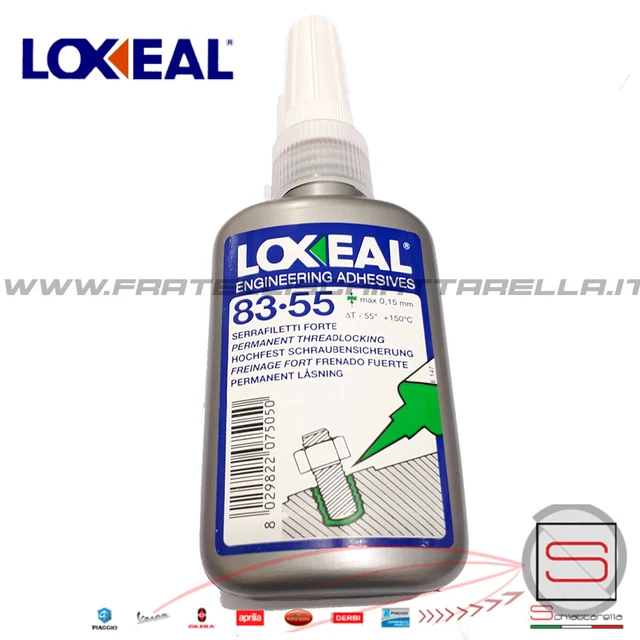 Serrafiletti forte LOXEAL 83-54. Adesivo anaerobico ad elevata resistenza meccanica per frenare giunzioni filettate. Può essere impiegato su tutti i metalli, sia in accoppiamenti liberi che forzati. Comprovata resistenza alla temperatura fino a +200°C, con elevata resistenza allo svitamento Adesivo Antiallentamento Serrafiletti Loxeal 83-55 Serrafiletti Ad Alta Resistenza 250ml - Specifico Per Prigionieri Serrafiletti Forte Per Alte Temperature Resistente al calore, Forte
