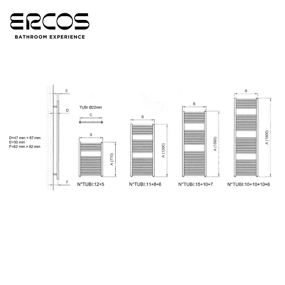 TERMOARREDO SCALDASALVIETTE IN ACCIAIO CROMO LUCIDO - Altezza 180 X L. 55 Cm - Interasse 50 Cm
