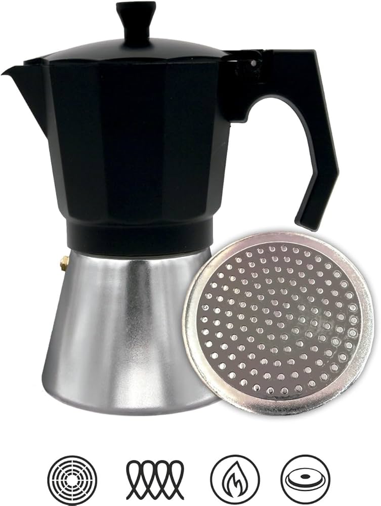 Cafetera Aluminio Esmaltado Negro Tipo Italiana Induccion 6 Color Negro