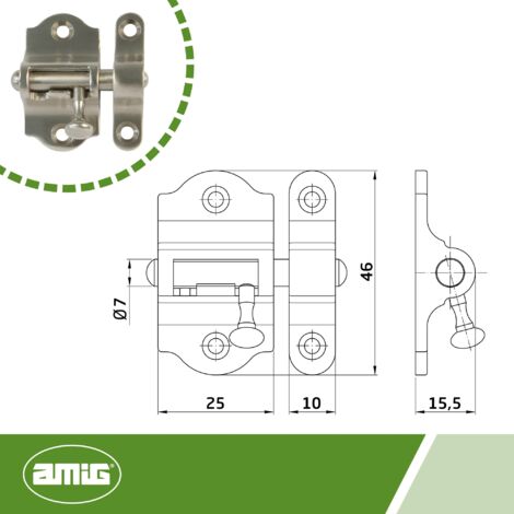Amig - Chiusura Per Porte Mod.720 25 X 46 Mm Chiavistello Di Sicurezza Per Chiusura Orizzontale Ottone Con Finitura Cromata Opaca Include Tirafondi