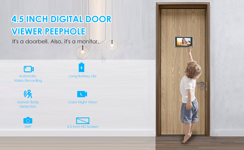 Telecamera Spioncino Intelligente, Spioncino Digitale TUYA 1080P Monitoraggio APP Ampio Angolo Di Visione Comodo, Per Home Office : Amazon.it: Fai Da