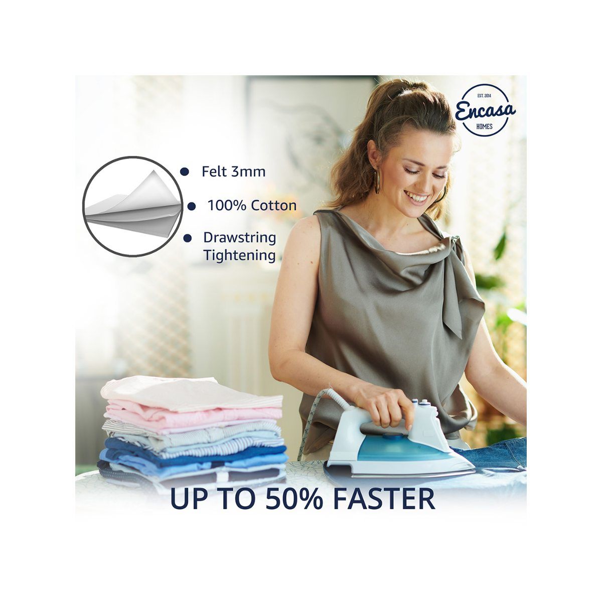 Encasa XO Ironing Board Cover And Pad - Thick 4mm Felt, Heat & Scorch-Resistant, Fits Wide Boards 125x46 Cm, Elastic Bungee Cord Tightening, Easy Fit