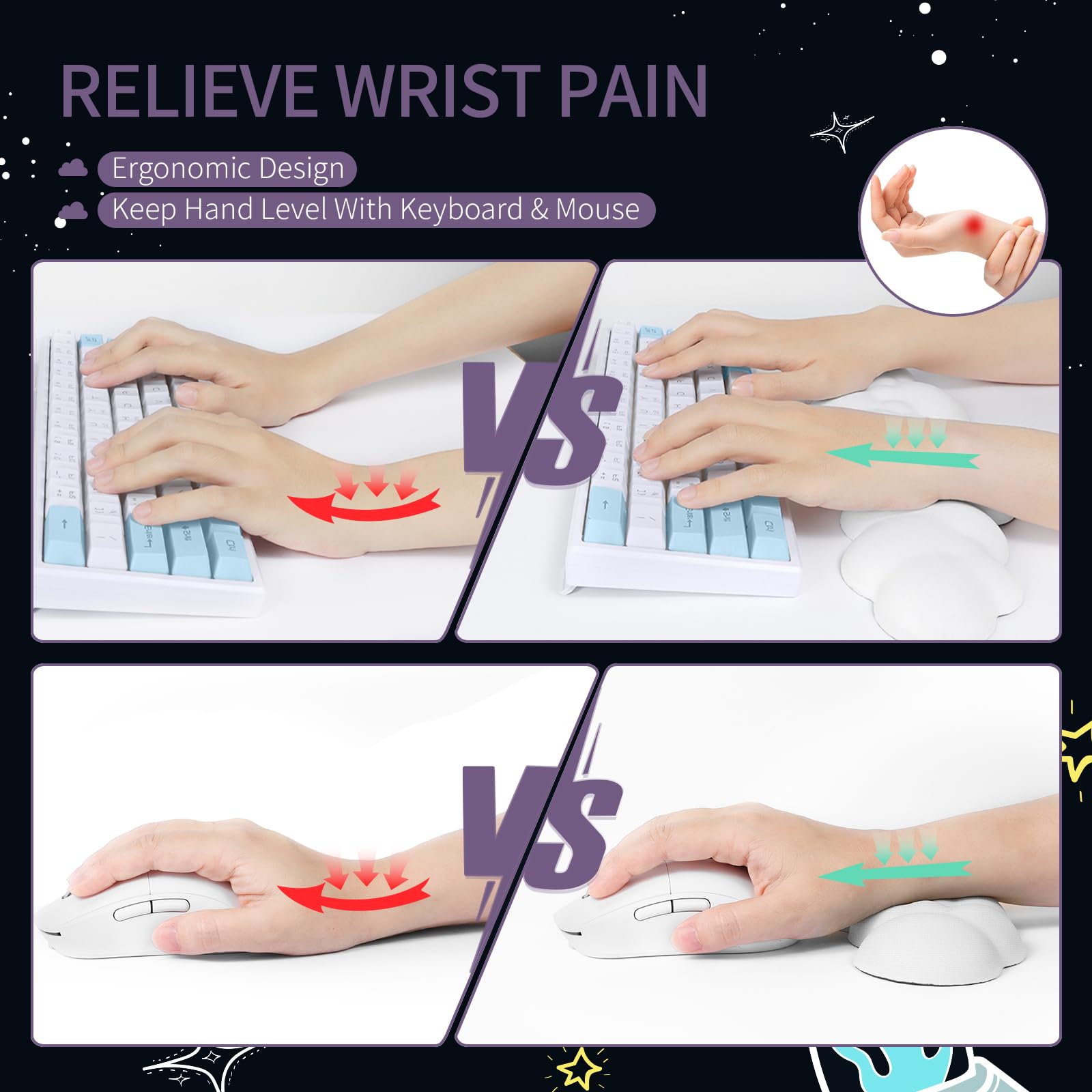 Tappetini Mouse Umitive Tappetino Mouse Ergonomico And Poggiapolsi Per Tastiera, Materiali Memory Foam, Base Antscivolo Per PC, Laptop E Notebook (Nero Tappeto Mouse Materiale confortevole: È realizzato in materiale PU di alta qualità, morbido e confortevole, liscio e traspirante, poggiapolsi in poliuretano a lento rimbalzo, tocco morbido e confortevole come una nuvola, liscio e traspirante, nessun odore, non facile da deformare. Set Di Poggiapolsi Per Tastiera E Mouse, In Memory Foam, Antiscivolo , Con Poggiapolsi Per Tastiera E Mouse, Ergonomici, Con Cuscinetto Per Il Polso ( Nero 16 € Ricevi sconti e novità di nella tua casella E-mail Iscriviti subito e ricevi scont Design ergonomico: Lo speciale design a forma di nuvola può adattarsi comodamente al polso, riducendo il carico su gomiti e spalle. I cuscinetti in gel sono resistenti all'acqua e agli oli e sono facili da pulire. Pratico set di due pezzi: Le dimensioni del poggiapolsi della tastiera sono 43,4*11*2,6 cm, quelle del poggiapolsi del mouse sono 15,2*9 cm, adatte alla maggior parte dei computer e dei portatili, per una digitazione prolungata o per giocare, semplici ed eleganti. Antiscivolo e impermeabile: I cuscinetti in silicone garantiscono una presa forte e impediscono il movimento durante l'uso. Fornisce un supporto ammortizzante al polso per rendere più confortevole la digitazione e alleviare l'affaticamento a lungo termine.