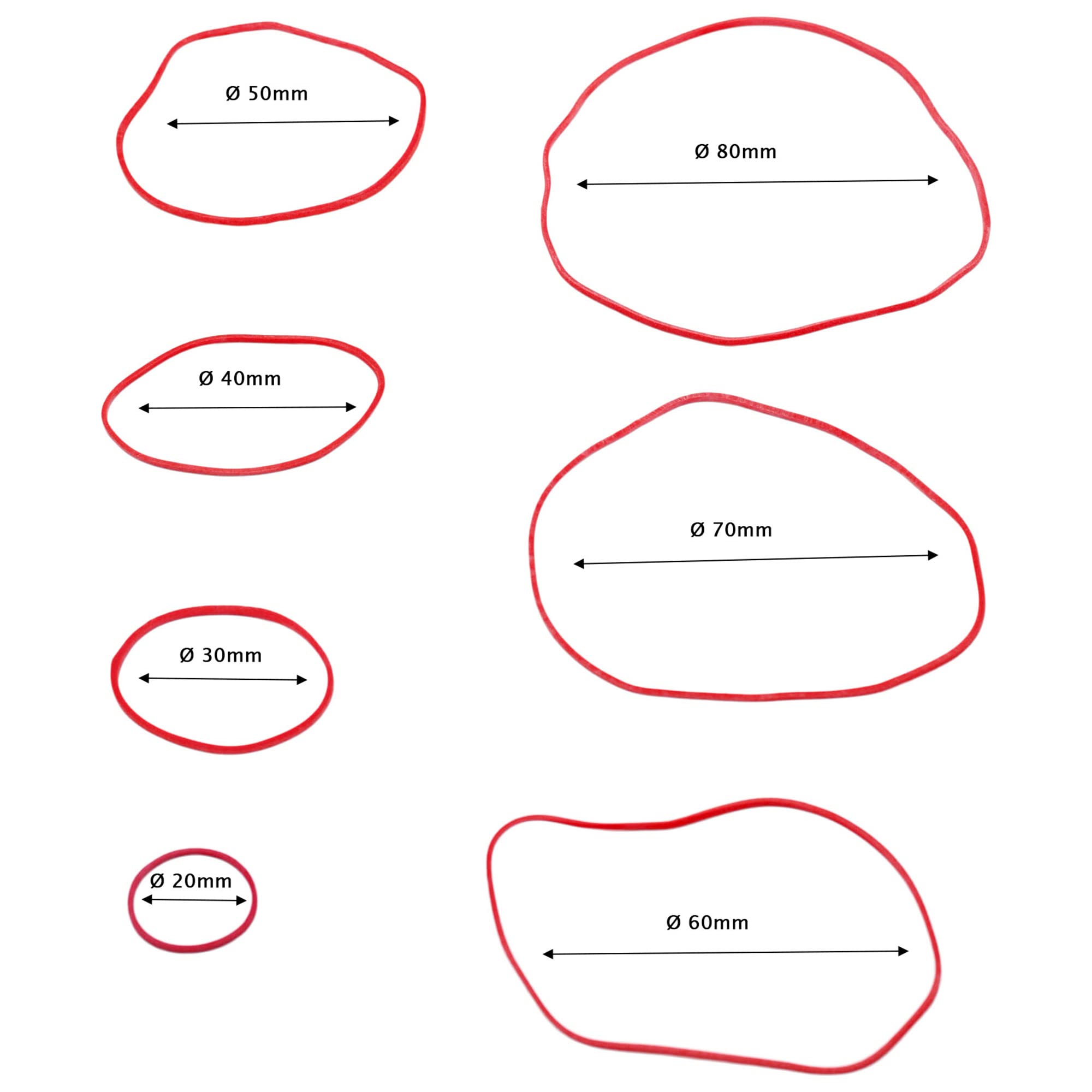 Anelli In Gomma Rossi, Estensibili, Diametro 20 Mm, Spessore 1 Mm
