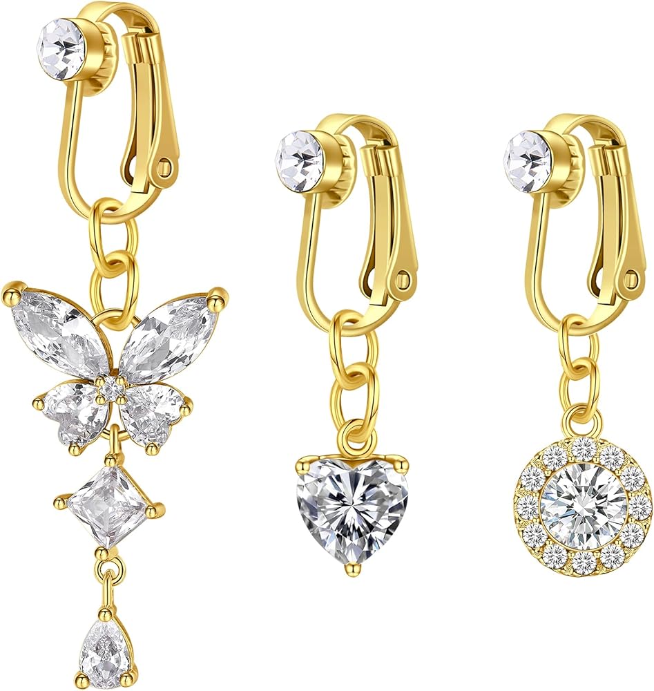 Piercing Finti Per Ombelico Cizme Set 3 Pezzi Di Finti Anelli Ombelico, Striscia Ombelico Oro In Acciaio Inox, Clip Ombelico Perforato, Con Ciondolo A Farfalla, Gioielli Traforati A Forma Di Cuore Finto Per Ombelico Falsa perforazione, adatta per popolazione non perforata. imballaggio:Clip 32pezzi, anello ombelico perforato, confezione gratuita Design squisito mostra il vostro gusto.