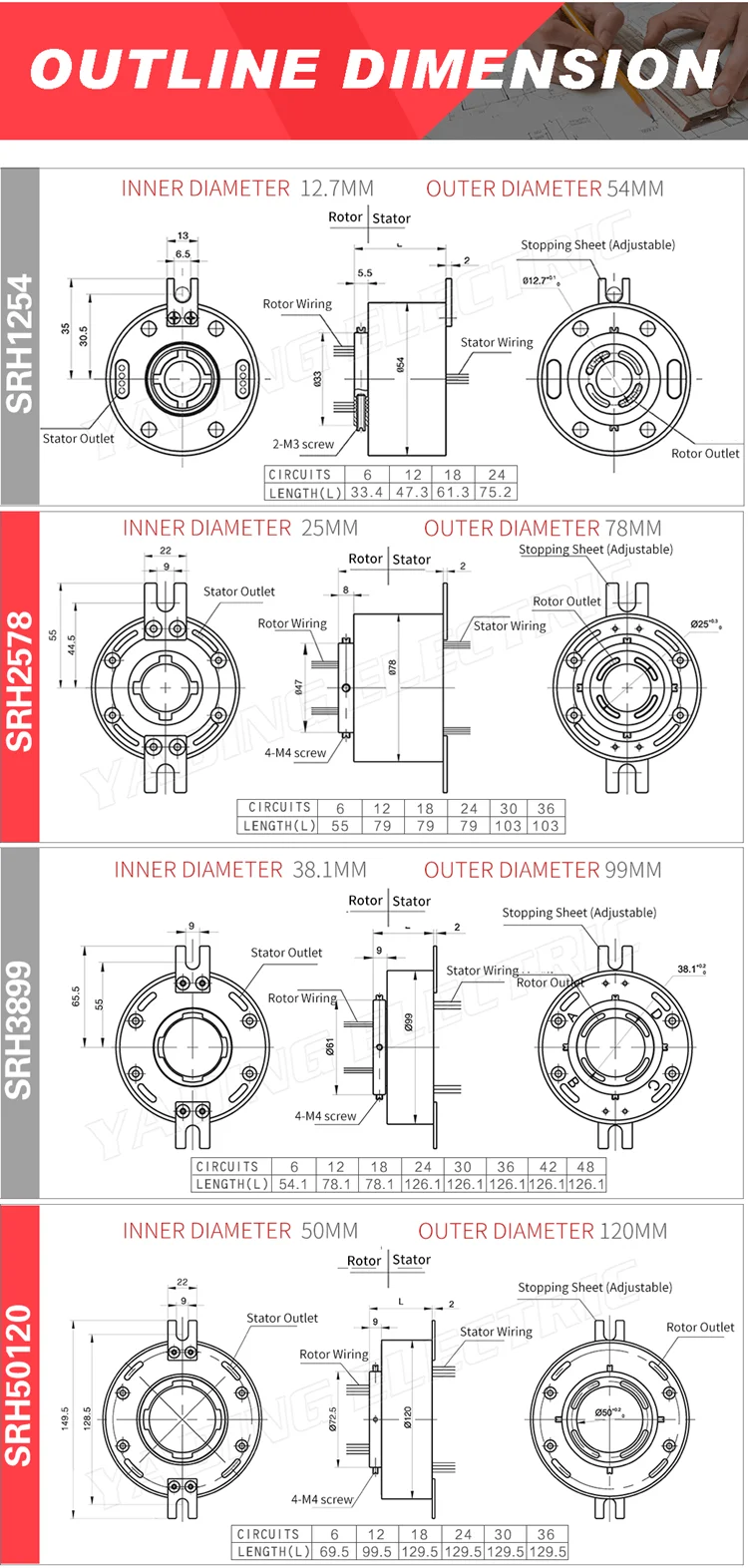 Anello Di Contatto Elettrico Ad Alta Potenza 3 Circui 30A Contatto rotante in oro e oro: il contatto rotante è dorato, garantendo una durata estremamente lunga. Ampia gamma di applicazioni: adatto per PTZ, apparecchiature di prova elettriche, tavole rotanti, apparecchiature, apparecchiature di monitoraggio della sicurezza CCTV e molto altro ancora. L'anello conduttore è progettato con una scanalatura a V ad angolo di 90 gradi per una rotazione delicata, una bassa coppia e un basso rumore elettrico Rotazione fluida a 360° e illimitata: consente una rotazione fluida e illimitata, soddisfacendo i requisiti per la trasmissione di immagini e dati.