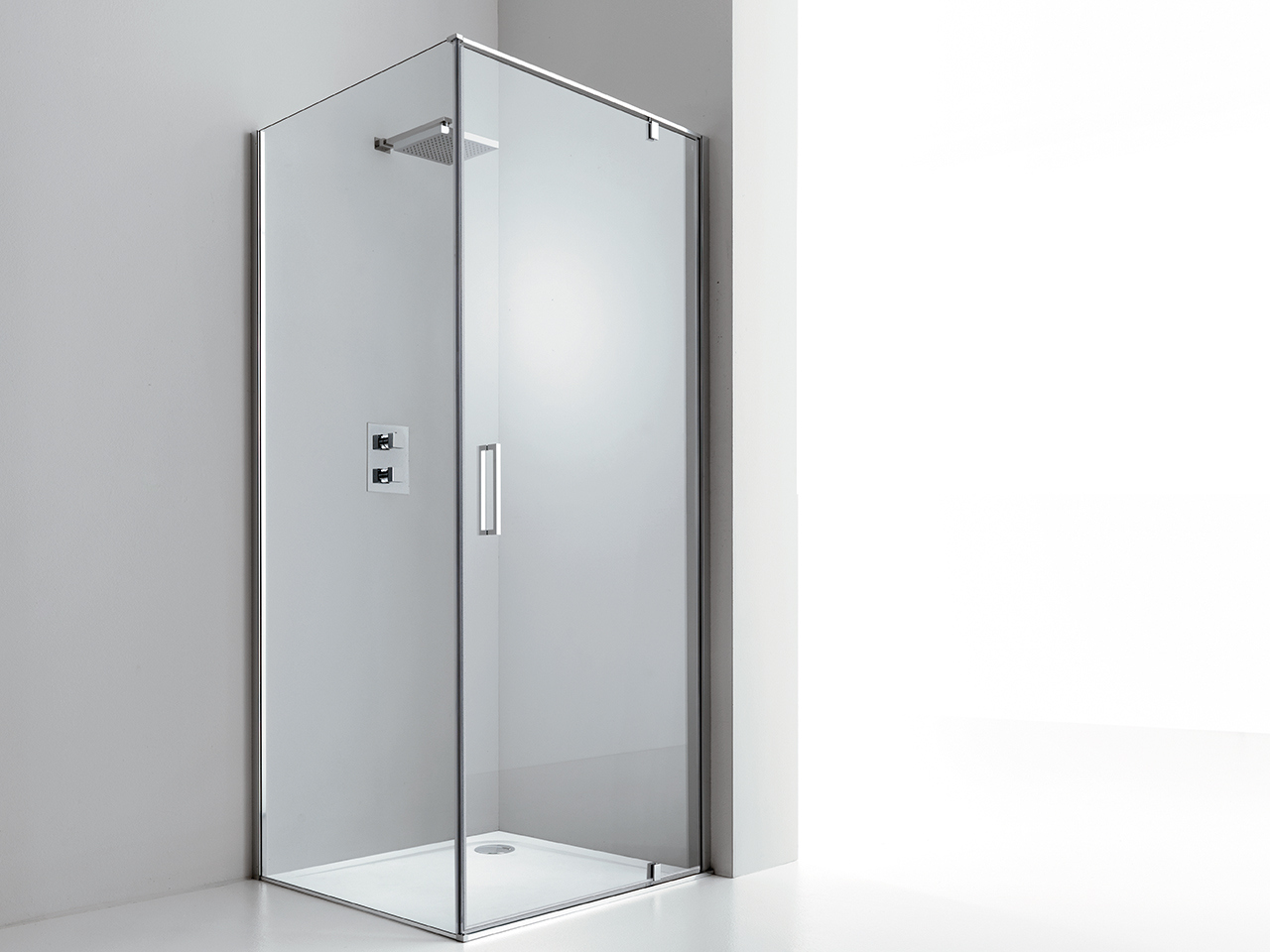 Cabina Doccia Angolare 90x90 Cm Con Anta Battente E Lato Fisso In Cristallo Temperato 8 Mm