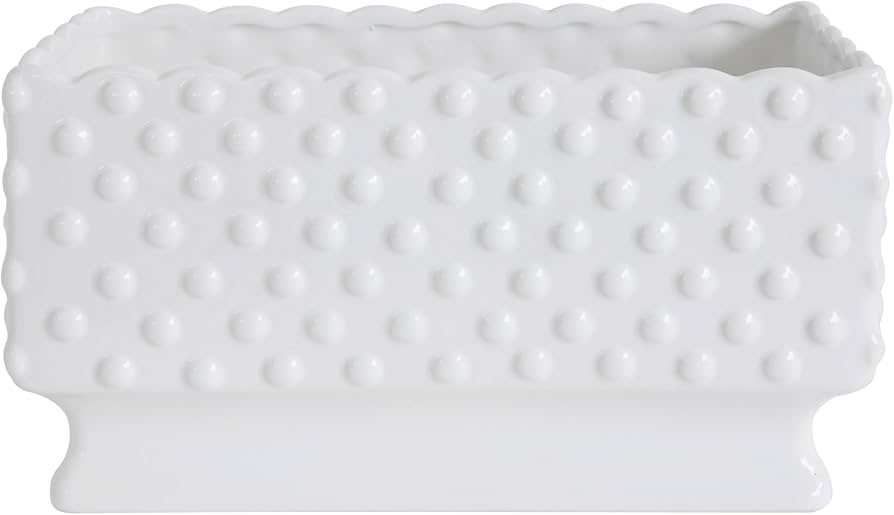 Può essere posizionato su qualsiasi superficie piana, come un tavolo, una mensola o un davanzale, per creare una bella esposizione in qualsiasi stanza. Ha anche un bordo smerlato e pois che aggiungono fascino e personalità alla fioriera. Fioriera da esterno rettangolare, modellata a mano e decorata interamente a mano in ceramica di Caltagirone. Smalto lucido in simil Cristallo. Vaso per pianta o fiori adatto per interni ed esterno. Portavaso da esterno o interno per piante con foro di drenaggio per l'acqua Where To Buy Fioriera Angolare Con Spalliera A 90 Gradi In Grigliato Wholesale Catalog Una bella ed elegante fioriera in ceramica con una trama a chiodo, bordo smerlato e pois che aggiungeranno fascino e stile alla casa. La fioriera misura 28,6 cm di lunghezza, 14,6 cm di larghezza e 15,2 cm di altezza. La fioriera può contenere qualsiasi pianta, fiore o erbe preferite, che si tratti di una rosa, una succulenta o un basilico. Adatta per arredamento in stile cottagecore, vintage o costiero. Aggiungi un po' di bellezza ed eleganza a qualsiasi casa con questa fioriera in ceramica con bordo smerlato e pois.