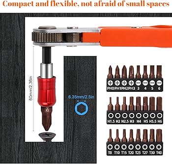 Chiavi A Cricchetto Cacciavite Ad Angolo A Cricchetto 1/4 10 Pezzi Chiave A Cricchetto Con un solo tocco, la rotazione destra e sinistra del cacciavite può essere rapidamente commutata dal serraggio all'allentamento della vite. Trova una vasta selezione di Cacciavite ad angolo a cacciaviti a prezzi vantaggiosi su . Scegli la consegna gratis per riparmiare di più. Subito a casa e in tutta sicurezza con Materiali di alta qualità: il cacciavite è realizzato in acciaio di alta precisione, che è durevole, e la maniglia è in materiale ABS, comodo e antiscivolo da tenere in mano. Con uno spessore di soli 0,47 pollici, è abbastanza piccolo da poter lavorare in spazi ristretti dove un cricchetto tradizionale o un cacciavite corto potrebbero essere troppo lunghi AMPIA GAMMA DI APPLICAZIONI: i mini cacciaviti a cricchetto coprono quasi le esigenze della maggior parte degli elettrodomestici, automobili, case, macchine e altri dispositivi. Un set può sostituire una cassetta degli attrezzi. SET MULTIUSO: il set di mini cacciaviti a cricchetto SIGANDG è dotato di un'impugnatura per cacciavite a cricchetto, 10 punte per cacciavite di uso comune e 9 dadi.