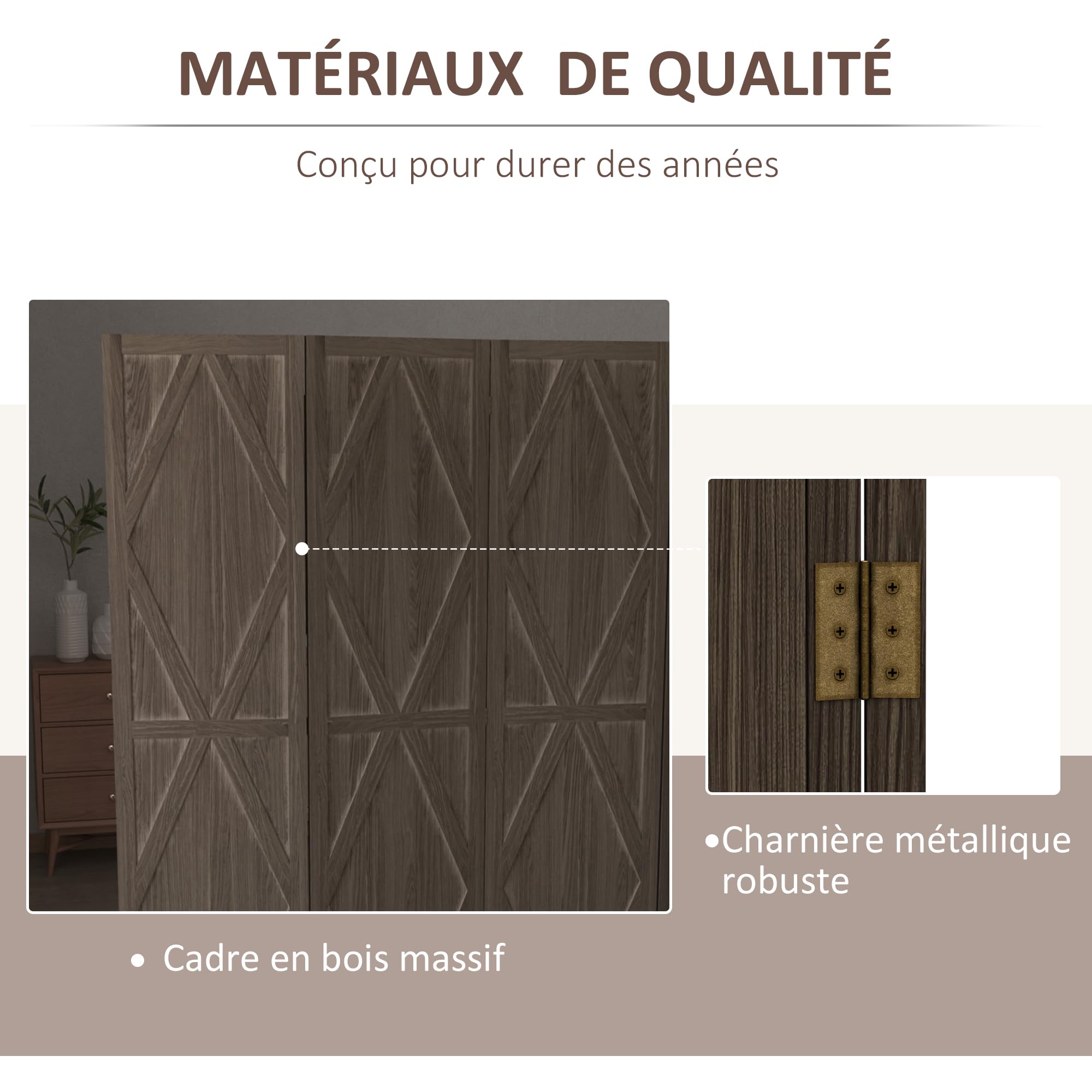 HOMCOM Paravento A 4 Ante Per Interni, Divisorio In Legno Per Camera E