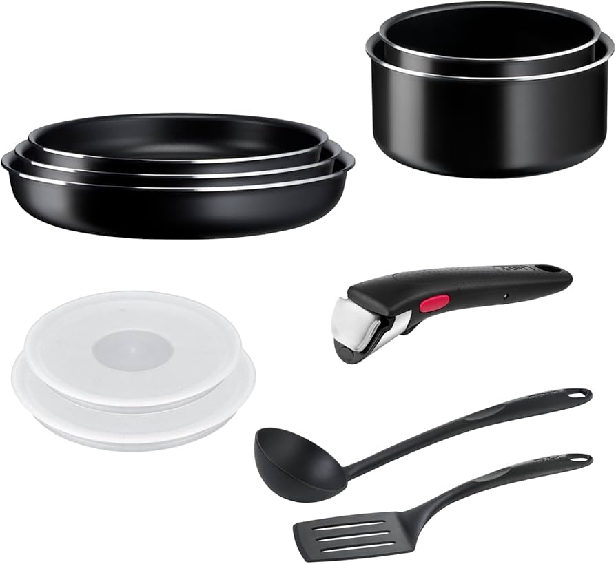 Tefal Ingenio - Set Di Pentole A Induzione, Rivestimento Antiaderente, Impilabile, Risparmio Di Spazio, Indicatore Di Temperatura, Cottura Sana, Made In Francia, Black Stone L3998702