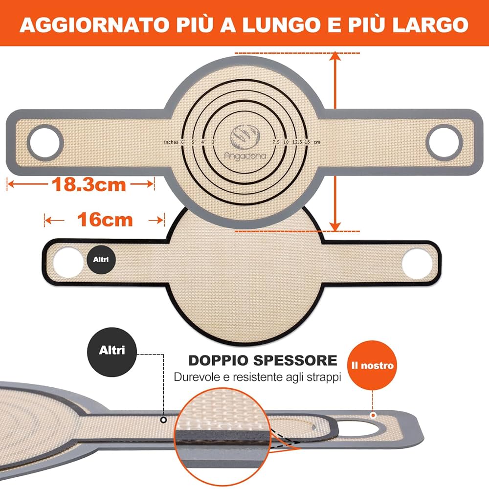 Porta la tua cottura al livello successivo Stampo Per Pane In Cassetta Imbracatura Per Pane In Silicone Da 2 Pezzi Con Manico Lungo Antiaderente Rotonda E Ovale Per Pasta Madre Tappetino Da Forno Fodera Per Forno Per Pasta Transfer Tappetini Da Forno Include 2 tappetini, ideale per cuocere il pane, vegetali, pizza e molto altro ancora. 【Materiale di alta qualità】realizzato in silicone alimentare, resistente al calore, inodore e sicuro. Dimeho 2 pezzi in silicone per pane ovale e rotondo per forno olandese antiaderente e facile da pulire riutilizzabile pane cottura mat set con manici lunghi trasferimento pasta madre strumenti Lunghezza del manico: 16 cm. Rendi la tua cottura un'esperienza che cambia la vita con i fiocchi per lievitazione. Lunghezza totale: 21 cm. Resistente al calore e durevole il tappetino ovale in silicone può utilizzare fino a 250 °C, uso sicuro in forno olandese e forno elettrico con una maggiore durata. Diametro del tappetino: 16 cm 【Resistente al calore e durevole】 Il nostro durevole fagiolo in silicone a lievitazione naturale, resiste a temperature fino a 280 °C, è perfetto per forno olandese e forni elettrici e garantisce una maggiore durata dei vostri utensili da forno. Caratteristiche: Realizzato in silicone alimentare, resistente al calore, inodore e sicuro. Antiaderente e facile da pulire il tappetino da forno ovale in silicone è una superficie antiaderente per tutti gli alimenti, facile da pulire a mano o lavabile in lavastoviglie. Design a manico lungo, è possibile trasferire facilmente l'impasto senza bruciare le mani. Un elemento cruciale del kit iniziale indispensabile per principianti. Questi tappetini ovali per il pane Dutch Oven sono atossici, inodore ed eccezionalmente durevoli, garantendo la sicurezza e la qualità del vostro pane a lievitazione naturale. 【Facile da pulire e mantenere】grazie alla loro superficie liscia e antiaderente, la pulizia di queste teglie in silicone è un gioco da ragazzi. Basta sciacquarli a mano sotto l'acqua corrente per rimuovere eventuali residui.