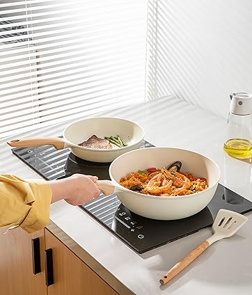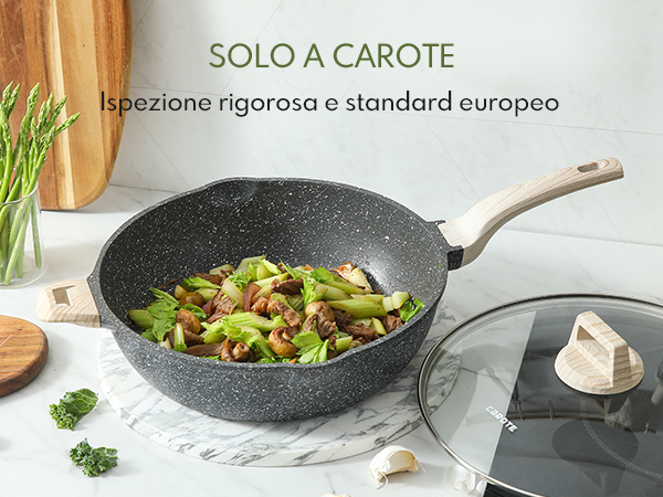 Facilmente gestibile con esclusive basi riscaldanti. Allo stesso tempo, le pareti laterali più alte possono impedire il trabocco, garantire la sicurezza della cottura. Padella Acciaio Inox CAROTE Padella 28cm Antiaderenti Con Coperchi,Profondità Padelle,Padelle Universali,Wok Con Rivestimento Antiaderenti Per Tutte Le Fondi Di Calore Induzione Padelle Antiaderenti Con la tecnologia della pressofusione, le nostre padelle sono molto più resistenti rispetto alla padella tradizionale. Distribuzione uniforme del calore: con un fondo piatto ed espanso, questa padella a induzione si riscalda in modo uniforme e rapido, conservando il calore a lungo. Nel caso in cui ricevessi articoli difettosi causati dalla consegna, non esitare a contattarci, grazie. Padella multifunzione 2 in 1: maniglie brevettate CAROTE rimovibili, che possono essere utilizzate come pentola o padella molto facilmente e comodamente Super facile da pulire: con le nostre eccellenti prestazioni antiaderenti e l'interno senza rivetti per evitare che il cibo si attacchi. Basta sciacquarlo con acqua saponosa dopo l'uso, facile e conveniente. Servizio e garanzia: ogni pentola CAROTE supera un rigoroso processo di ispezione multipla.