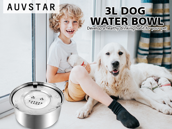 Luziyun Ciotola Acqua Cane Antigoccia 1L In Acciaio Inox–Grande