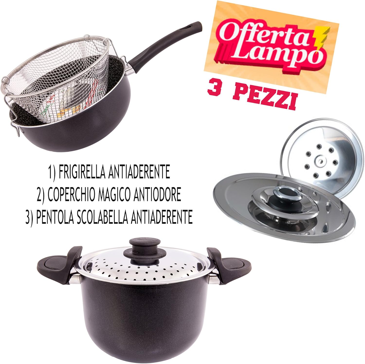 Un coperchio tradizionale impedisce la cottura sulla parte superiore degli alimenti. Ventur Magic è un coperchio magico antifumo che sfrutta sia il vapore emanato dai cibi durante la cottura, sia il calore che è in grado di far raggiungere per rifrazione, per cuocere in maniera sana ed economica, e soprattutto veloce, senza ovviamente perdere il gusto ed il sapore. Kit 3 Coperchi Magici Antiodore Ventur Magic 27, 31, 35 cm Cooker in Acciaio Inox Pomello Rosso Coperchio Magico Kit 3 Coperchi Magici Antiodore Ventur Magic 27, 31, 35 Cm Cooker In Acciaio Inox Pomello Rosso Ventur Magic Sito Ufficiale Questo consente una cottura omogenea grazie al fatto che il calore può lavorare anche sul lato superiore del cibo. Usando Ventur Magic si mantiene più pulito anche il piano cottura, senza schizzi ne fuoriuscite di liquidi dalla pentola, con le quattro misure a disposizione, può essere adattato a qualsiasi pentola o padella. Si può fin Naturalmente la cottura utilizzando basse temperature, conserva le proprietà organolettiche dei cibi, donando più sapore ad ogni pietanza, con un risparmio energetico che può arrivare fino al 50%, e soprattutto grazie alle basse temperature, i cattivi odori di fritto si eliminano e, per le cotture di altri alimenti, la sola uscita di vapore distillato dai fori, riduce notevolmente gli odori. Provalo durante la cottura della pasta per evitare la fuoriuscita dei liquidi e garantendo quindi una sicurezza maggiore per te e la tua famiglia. Questo coperchio antiodore renderà la cucina facile, veloce e sana.