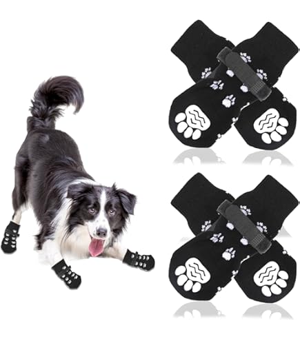 Calzini Neve Cane TOEECY Calzini Antiscivolo Cani Protettore Zampe Impedisce Calze Antiscivolo Cane Calzini per Animali Domestici: Questi calzini impermeabili e antiscivolo per cani gatti offrono un'eccellente funzione antiscivolo. VERSATILI]I nostri calzini antiscivolo per cani possono essere utilizzati per fornire una protezione calda al vostro cane quando fa freddo in casa, così come per le passeggiate, i giochi all'aperto e altre attività all'aperto per proteggere le zampe del Sia per le attività al chiuso che per quelle all'aperto, assicurano che le zampe del vostro animale domestico siano asciutte e confortevoli, affrontando perfettamente i vari ambienti. Occasioni Adatte: Che si tratti di camminare sul pavimento di casa o di correre sull'erba all'aperto, questi calzini offrono una protezione eccellente per il vostro animale domestico. Immaginate il vostro animale domestico che cammina sotto la pioggia senza doversi preoccupare di fango e scivolosità. Protezione Multifunzionale: Indossare questi calzini per animali domestici non solo protegge dalle superfici calde e fredde, ma previene anche efficacemente i graffi di mobili e pavimenti e mantiene le zampe pulite dallo sporco esterno. Materiale di Alta Qualità: Realizzati in cotone di alta qualità, questi calzini per animali domestici sono morbidi e traspiranti, garantendo il comfort per un uso prolungato.