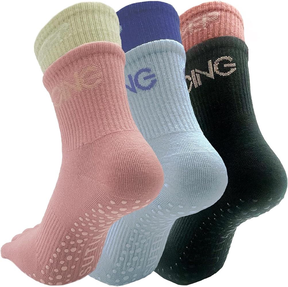 LOFIR Calze Antiscivolo Yoga Donna Con Dita, 3 Paia Calzini Cinque Dita Da Donna Pilates Antiscivolo Calzini