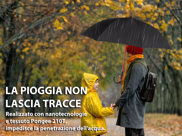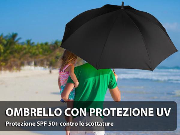 Ombrello Nero Bastone Impermeabile Antivento Aperto Imper Tid3046