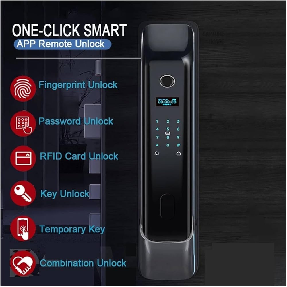 Funziona con 4 batterie AA, con un’autonomia fino a 10 mesi. ROBUSTEZZA E DURATA NEL TEMPO – Realizzata in acciaio inossidabile con grado di protezione IP55, progettata per durare nel tempo. Serratura Porta Interna WiFi Tuya Smart Life App Controllo Del Telefono Serratura Elettronica Intelligente Digitale Impronta Digitale Biometrica Smart Lock Serrature Per Porte Con Impronte Digitali, Serrature Per Porte : Amazon.it: Fai Da Te Maniglia Porta CONTROLLO COMPLETO DEGLI ACCESSI – Basta con le chiavi perse e lo stress per fornire l’accesso. Perfetta per famiglie, coinquilini o affitti brevi. Collegala a videocamere o campanelli smart per una sicurezza domestica ancora più completa. Supporta l'APP Tuya per controllare il serratura intelligente da remoto o invia password temporanea ai tuoi amici di passaggio. Supporto per metodi di sblocco multipli: impronta digitale, password, chiave meccanica, password temporanea tramite APP Tuya Questa maniglia intelligente offre 5 modalità di sblocco: smartphone, codice PIN, impronta digitale, badge o chiave classica. COMODITÀ PER TUTTA LA FAMIGLIA – La maniglia supporta fino a 50 impronte digitali, 50 badge e 50 codici PIN, per un accesso sicuro e personalizzato per ogni utente. In caso di necessità, sono disponibili ricambi.