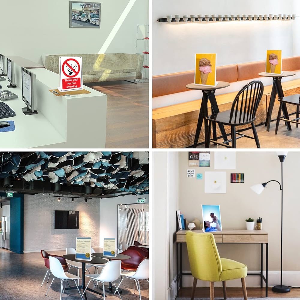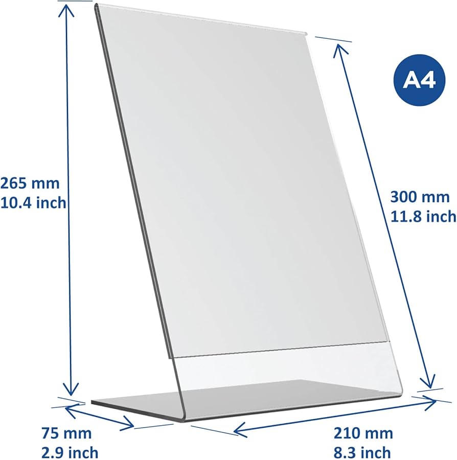 ELEGANTE DISPLAY PER LA TUA GRAFICA: Riceverai una confezione da 6 pezzi. L'ampia base piatta mantiene il supporto stabile su piani di lavoro, tavolo da ufficio, desktop e ogni altra superficie piana. Esponi i tuoi annunci, promozioni, menù dei ristoranti, volantini e altri messaggi importanti con i nostri supporti per cartelli. Europel Set di 6 supporti da tavolo a L, formato DIN A4, in polistirene trasparente 1,5 mm, per menù e opuscoli, ristoranti, hotel, conferenze ricevimenti Polistirene di alta qualità, trasparente come il vetro: abbiamo accuratamente acquistato polistirene di alta qualità per garantire che il supporto per cartelli duri anni di utilizzo. 6 supporti per cartelli, per una presentazione rappresentativa di opuscoli e cartellini dei prezzi. *Standard L. Espositore Plexiglass Coperchio Da Appoggio L160xP105mm Polistirene Trasparente Per Misura 7 Menu Ristorante A4 Design autoportante e base non oscillante: il supporto per cartelli sta in piedi da solo senza alcun supporto aggiuntivo grazie alla sua forma a L. La qualità dei nostri supporti per cartelli protegge il contenuto da sporco e polvere. Questi supporti multiuso possono essere utilizzati in uffici, ristoranti, scuole e altri ambienti commerciali Il design a caricamento rapido rende il cartello adatto a luoghi in cui la grafica viene cambiata frequentemente, ad esempio ristoranti. Cambia grafica in un attimo: il supporto per cartelli presenta fessure di inserimento sul fondo e sui lati per un rapido caricamento e scarico degli annunci.