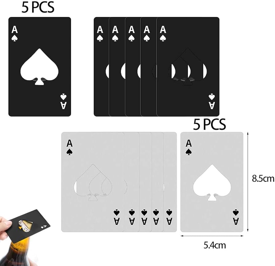 Facile da mantenere: sono delle dimensioni di una carta di credito. Possono essere messi nel vostro portafoglio della carta di credito o in tasca. WZLEMOM 2 Pezzi Forma di poker Opener Birra, a forma di carta di credito adatto alle dimensioni del portafoglio, Apribottiglie Apribottiglie, Cavatappi Apri Barattolo per riunirsi Marca È a portata di mano ogni volta che ne hai bisogno. Facilmente riponibile in un portafoglio o in un altro piccolo spazio. It è fatto di metallo robusto ed è lo strumento perfetto per il tuo amante della birra preferito. Migliorata bordo liscio, nessuna preoccupazione di graffiare la mano. È leggero, comodo e facile da trasportare. 1. Puoi tenere un portafoglio delle dimensioni di una carta di credito nella tua borsa. 2. Si può tenere in casa come un oggetto decorativo. 3. Puoi tenerlo nel tuo portafoglio e non devi trovare un apribottiglie. Design unico: Fashion stainless steel credit card bottle opener ti rende speciale e brillante in ogni occasione. Puoi trovare altri stili nel negozio WZLEMOM. 1. Materiale: acciaio inox 2. Colore: argento, nero 3. Dimensioni: 8,5 x 5,4 cm. Peso: 120g 4. La confezione include: 4 apribottiglie Segnaposto Matrimonio Create Idea 4 Pezzi Carta Di Credito Dimensione Poker Apribottiglie Bar In Acciaio Inox Birra Apribottiglie Kit Metallo Portatile Bar Ristoranti Nero E Argento : Amazon.it: Casa E Cucina Cose Da 1 Euro